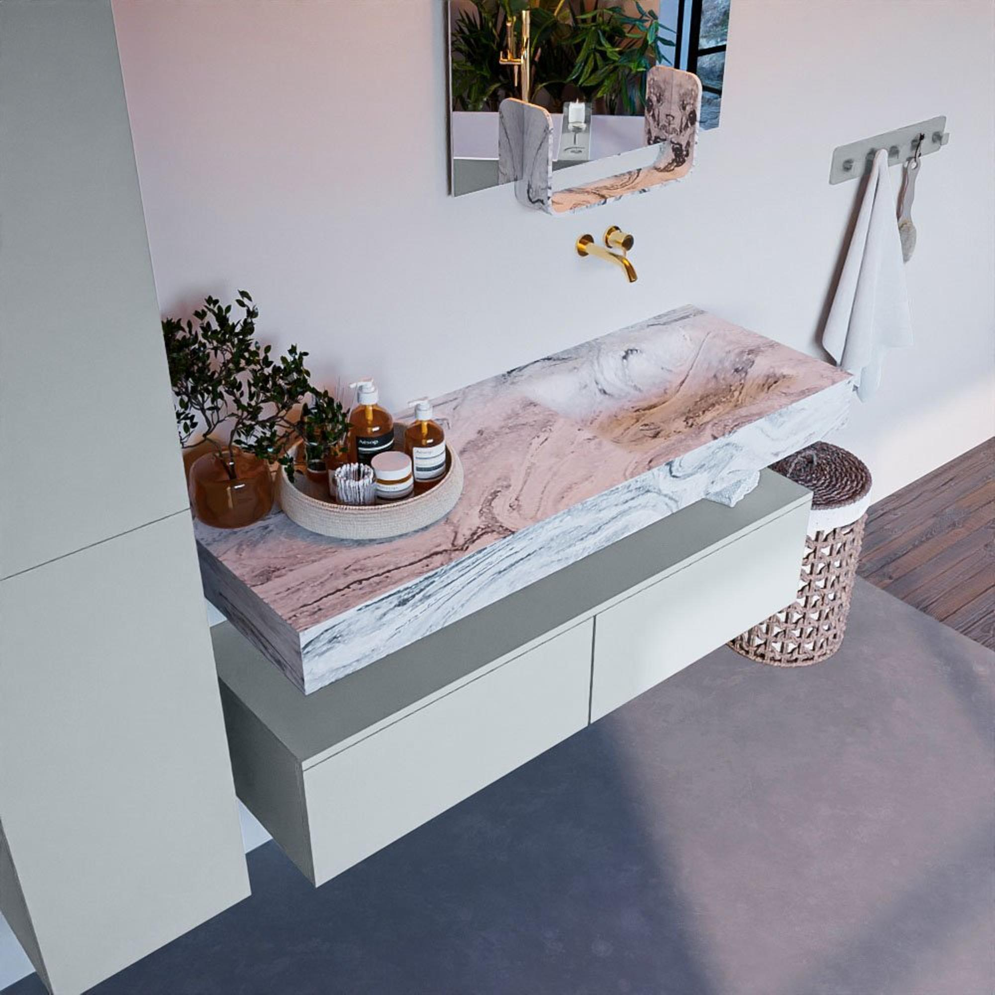 MONDIAZ ALAN - DLUX Badkamermeubelset - 130cm - onderkast - Clay - 2 lades - vrijhangende wastafel - wasbak rechts - 0 kraangaten - Glace