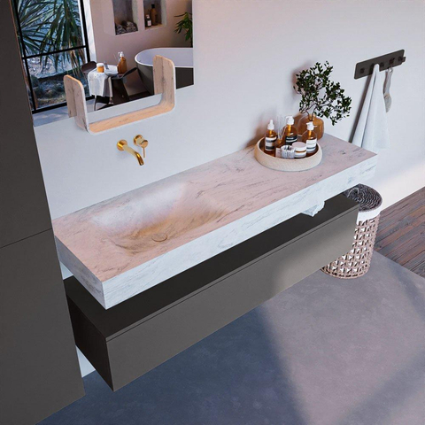 MONDIAZ ALAN - DLUX Badkamermeubelset - 150cm - onderkast - Dark grey - 1 lade - vrijhangende wastafel - wasbak links - 0 kraangaten - Opalo
