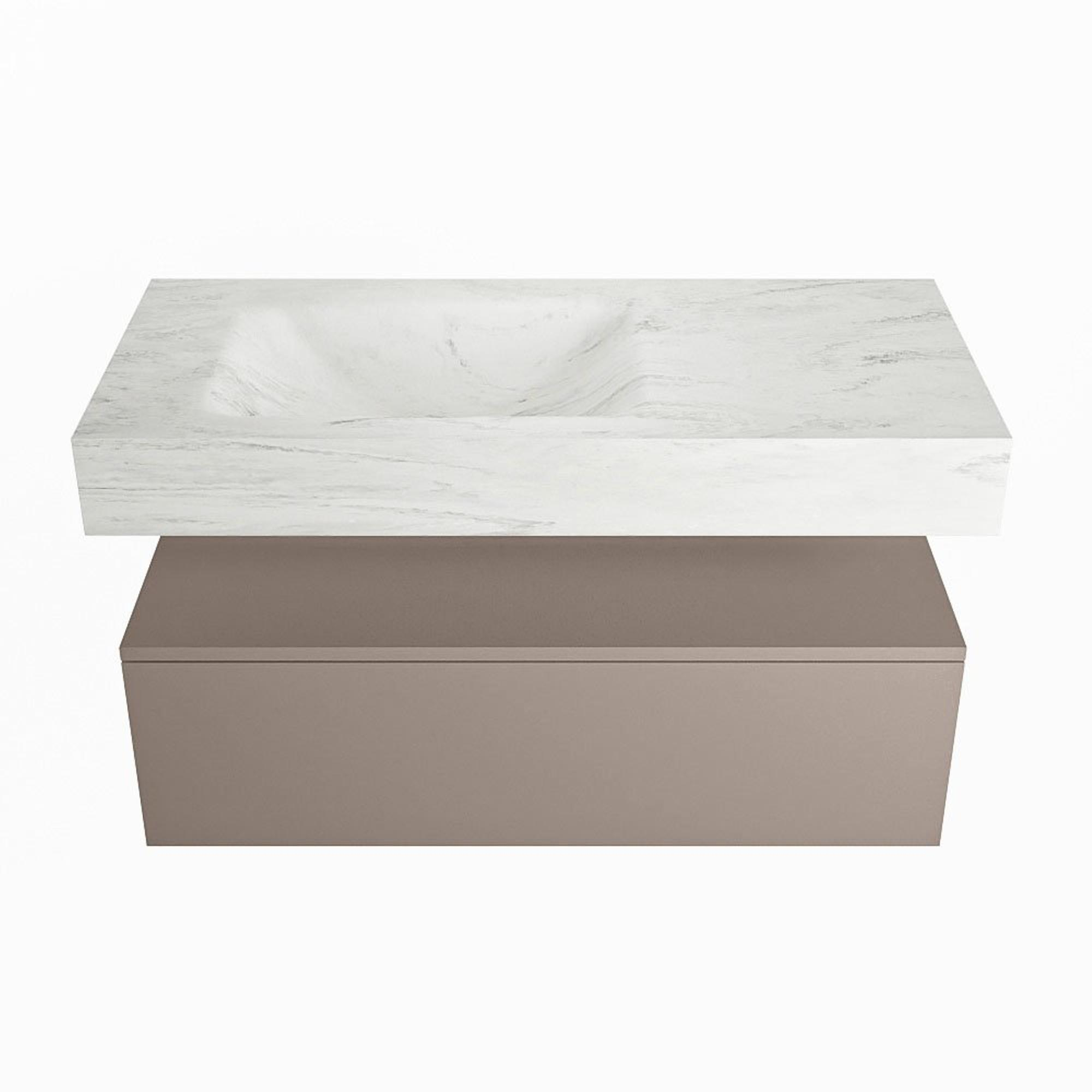 MONDIAZ ALAN - DLUX Badkamermeubelset - 100cm - onderkast - Smoke - 1 lade - vrijhangende wastafel - wasbak links - 1 kraangat - Opalo