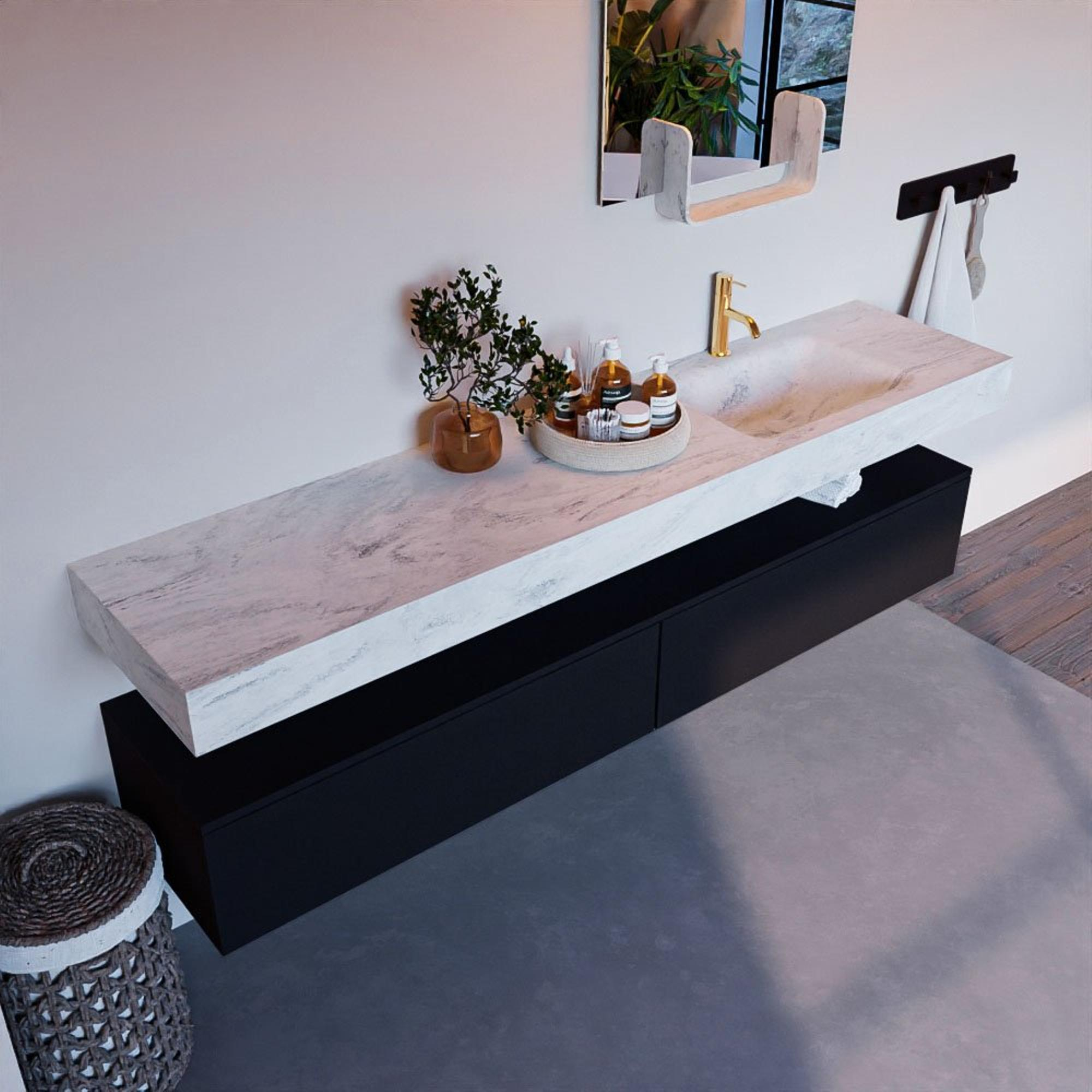MONDIAZ ALAN - DLUX Badkamermeubelset - 200cm - onderkast - Urban - 2 lades - vrijhangende wastafel - wasbak rechts - 1 kraangat - Opalo