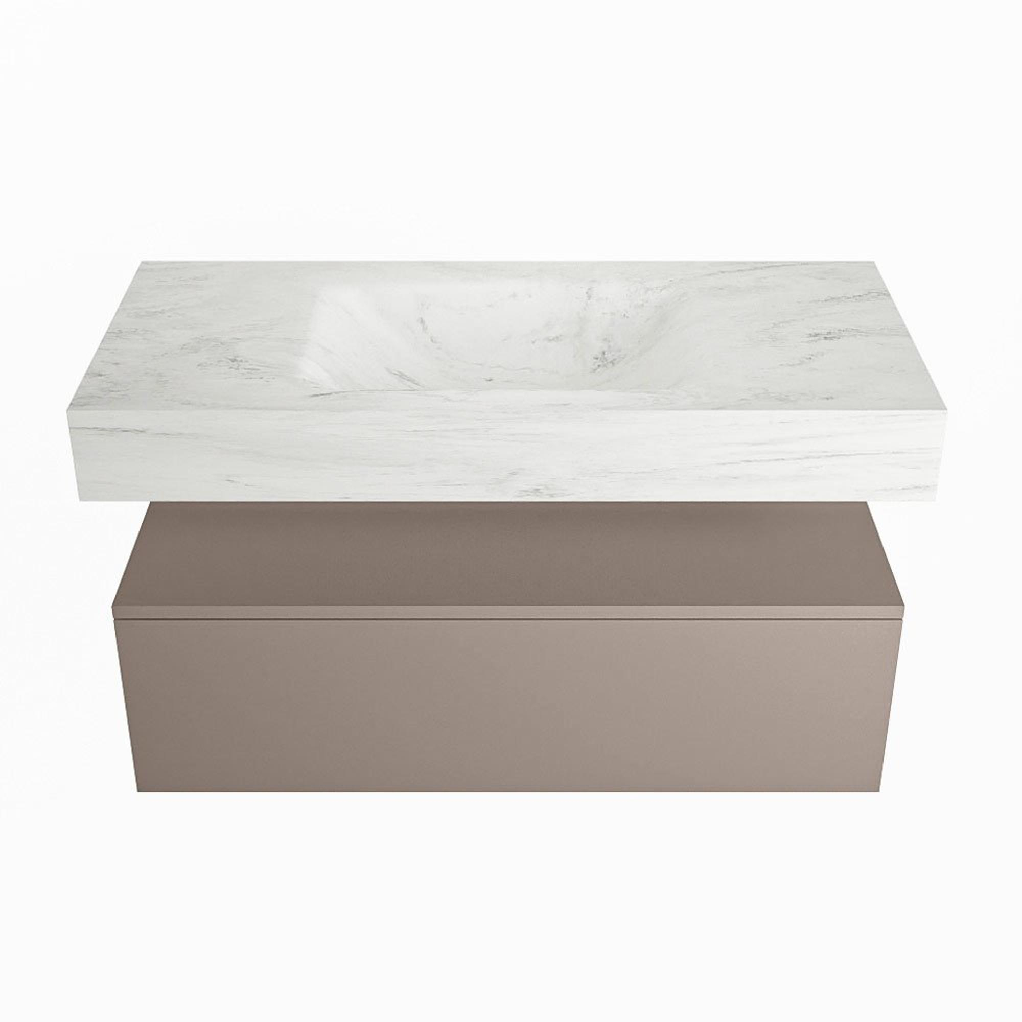 MONDIAZ ALAN - DLUX Badkamermeubelset - 100cm - onderkast - Smoke - 1 lade - vrijhangende wastafel - wasbak midden - 0 kraangaten - Opalo
