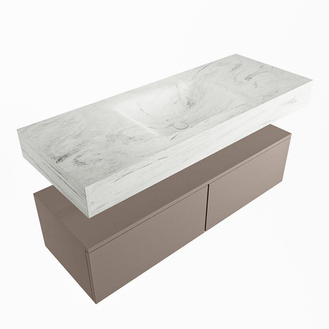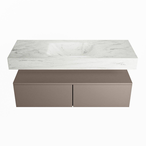 MONDIAZ ALAN - DLUX Badkamermeubelset - 120cm - onderkast - Smoke - 2 lades - vrijhangende wastafel - wasbak midden - 0 kraangaten - Opalo
