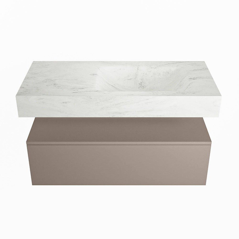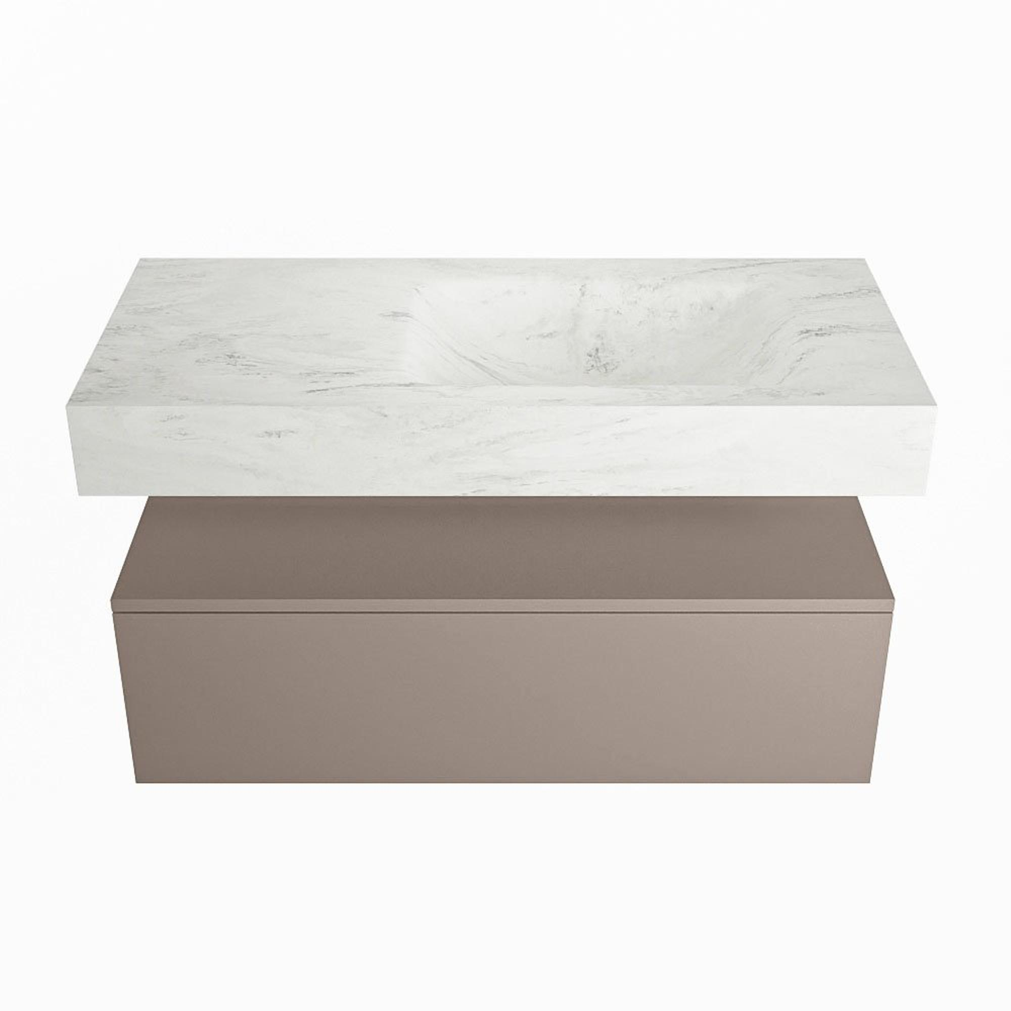 MONDIAZ ALAN - DLUX Badkamermeubelset - 100cm - onderkast - Smoke - 1 lade - vrijhangende wastafel - wasbak rechts - 0 kraangaten - Opalo