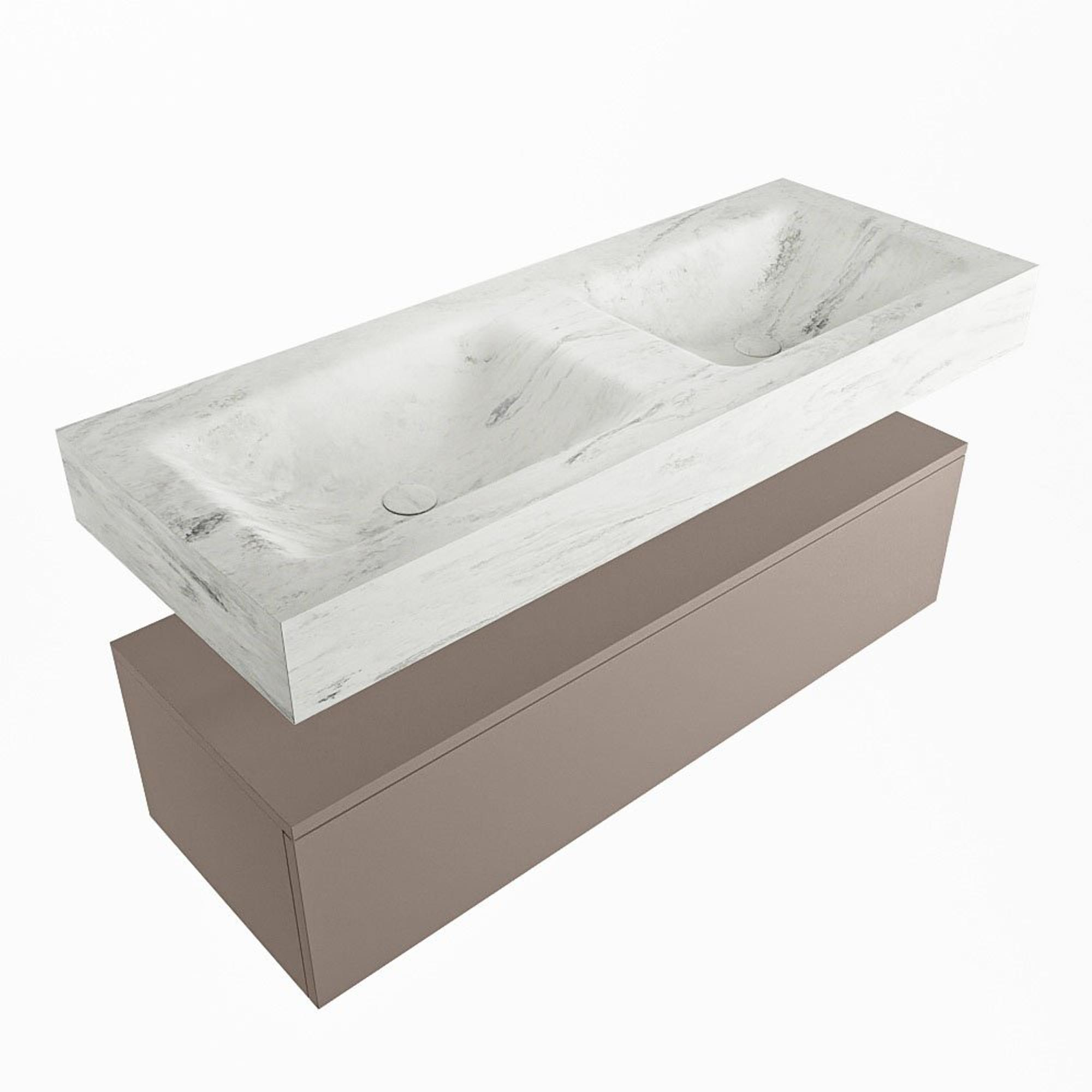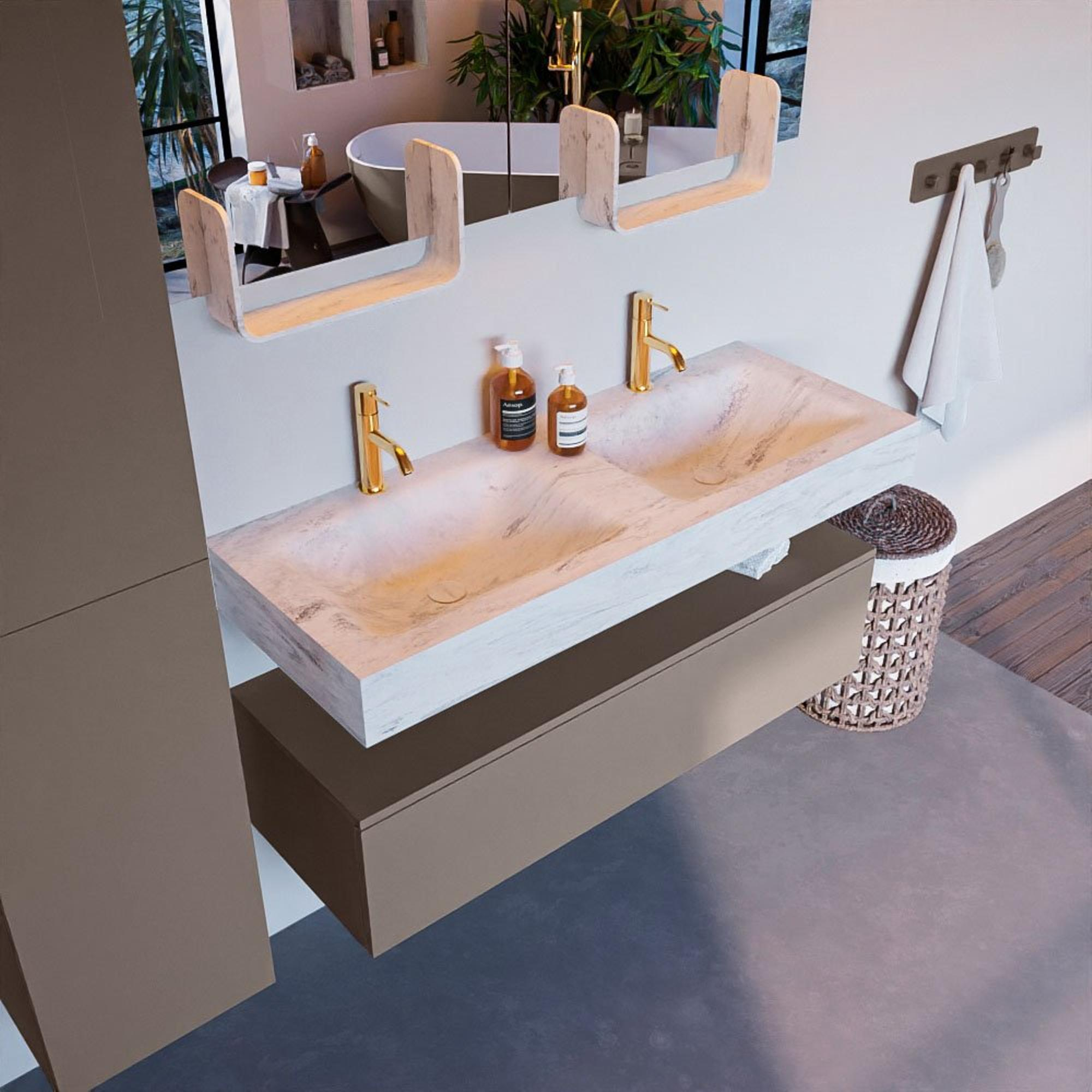 MONDIAZ ALAN - DLUX Badkamermeubelset - 120cm - onderkast - Smoke - 1 lade - vrijhangende wastafel - 2 wasbakken - 2 kraangaten - Opalo