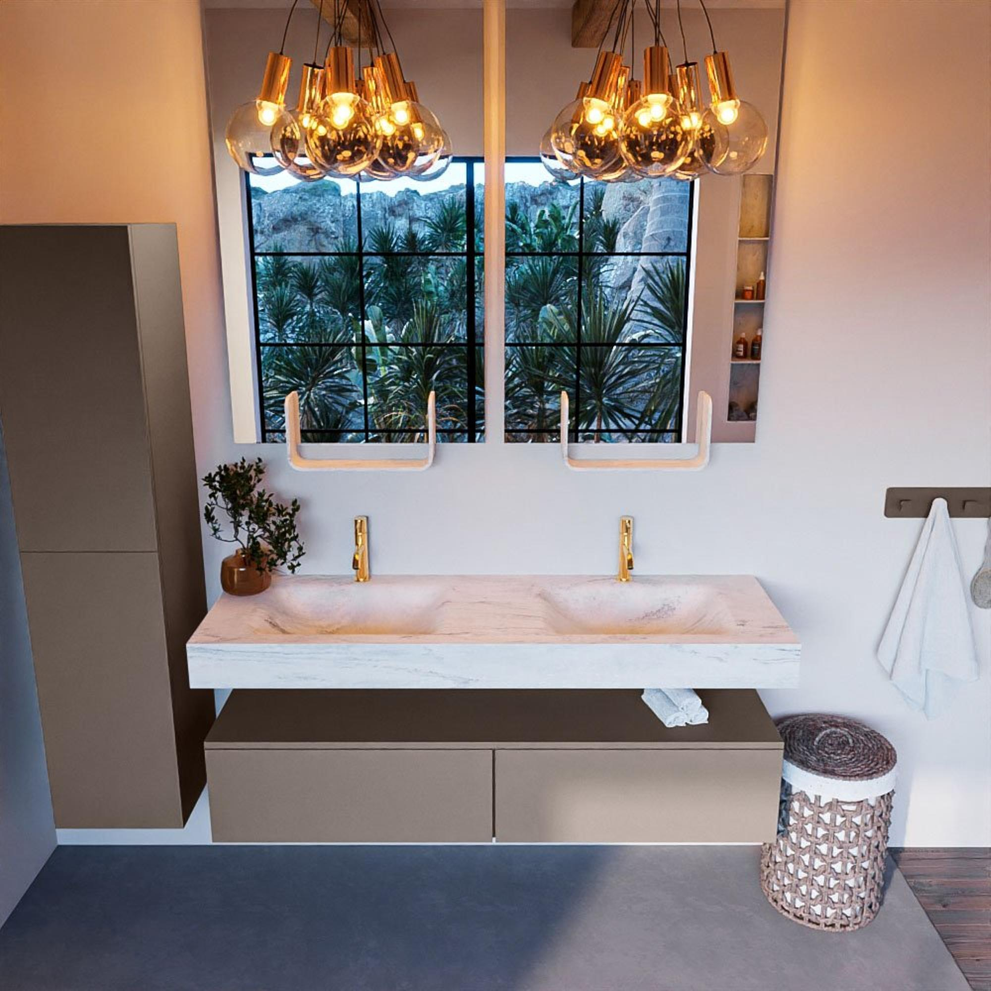 - Vrijhangende wastafel met 2 wasbakken