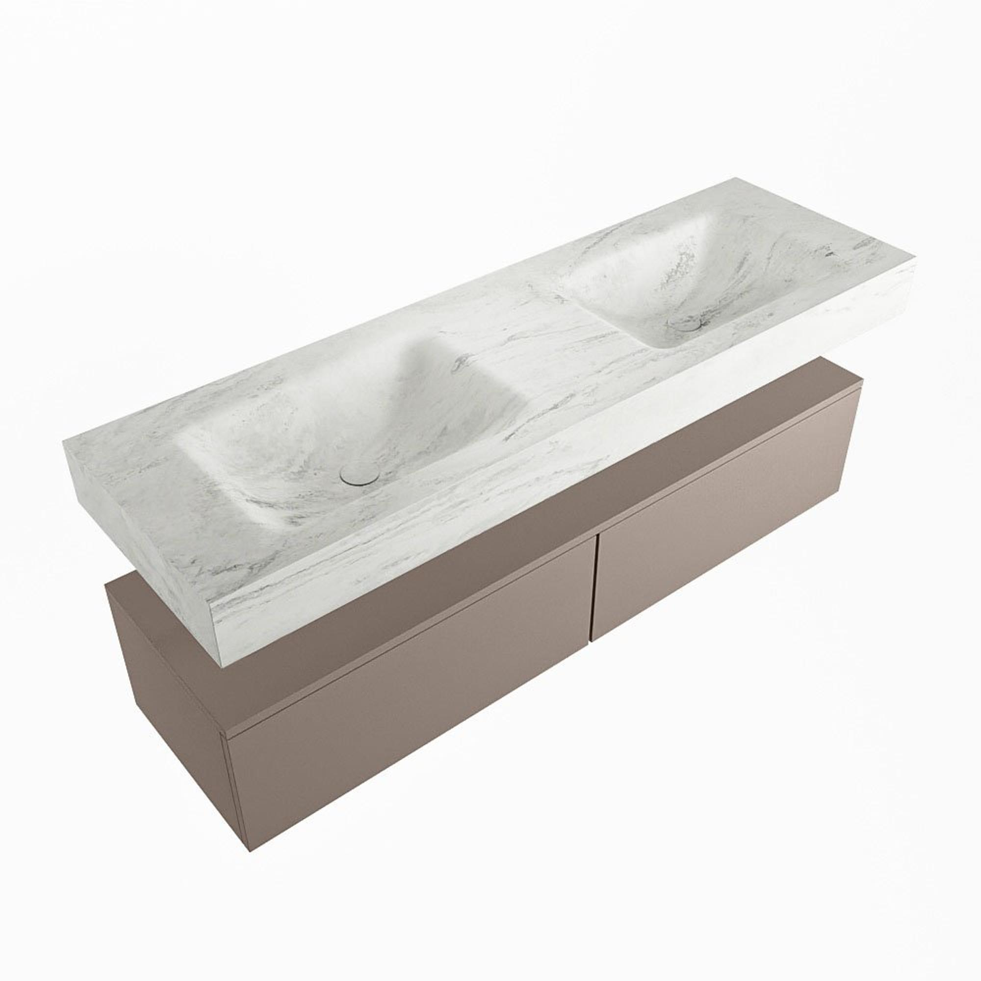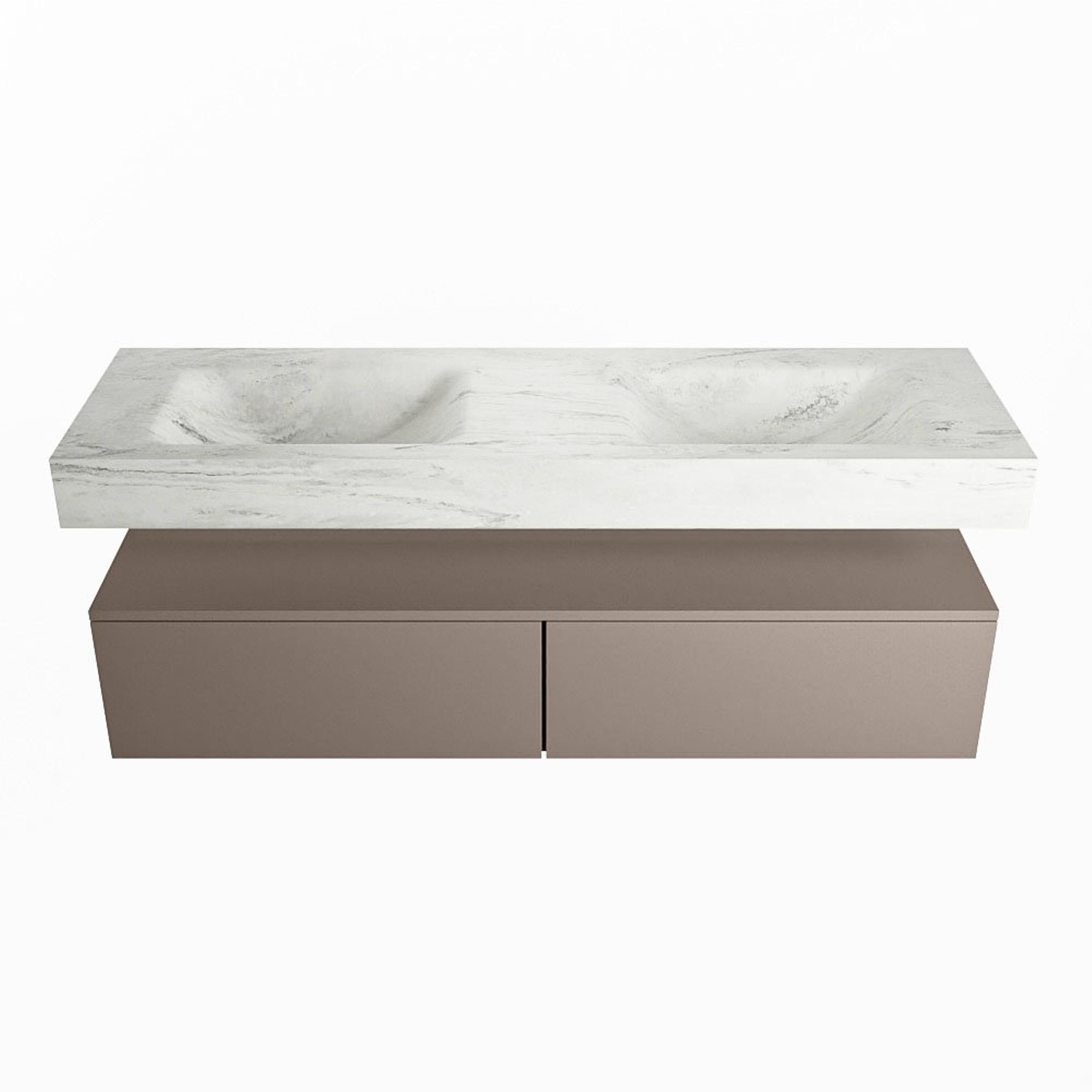 MONDIAZ ALAN - DLUX Badkamermeubelset - 150cm - onderkast - Smoke - 2 lades - vrijhangende wastafel - 2 wasbakken - 2 kraangaten - Opalo