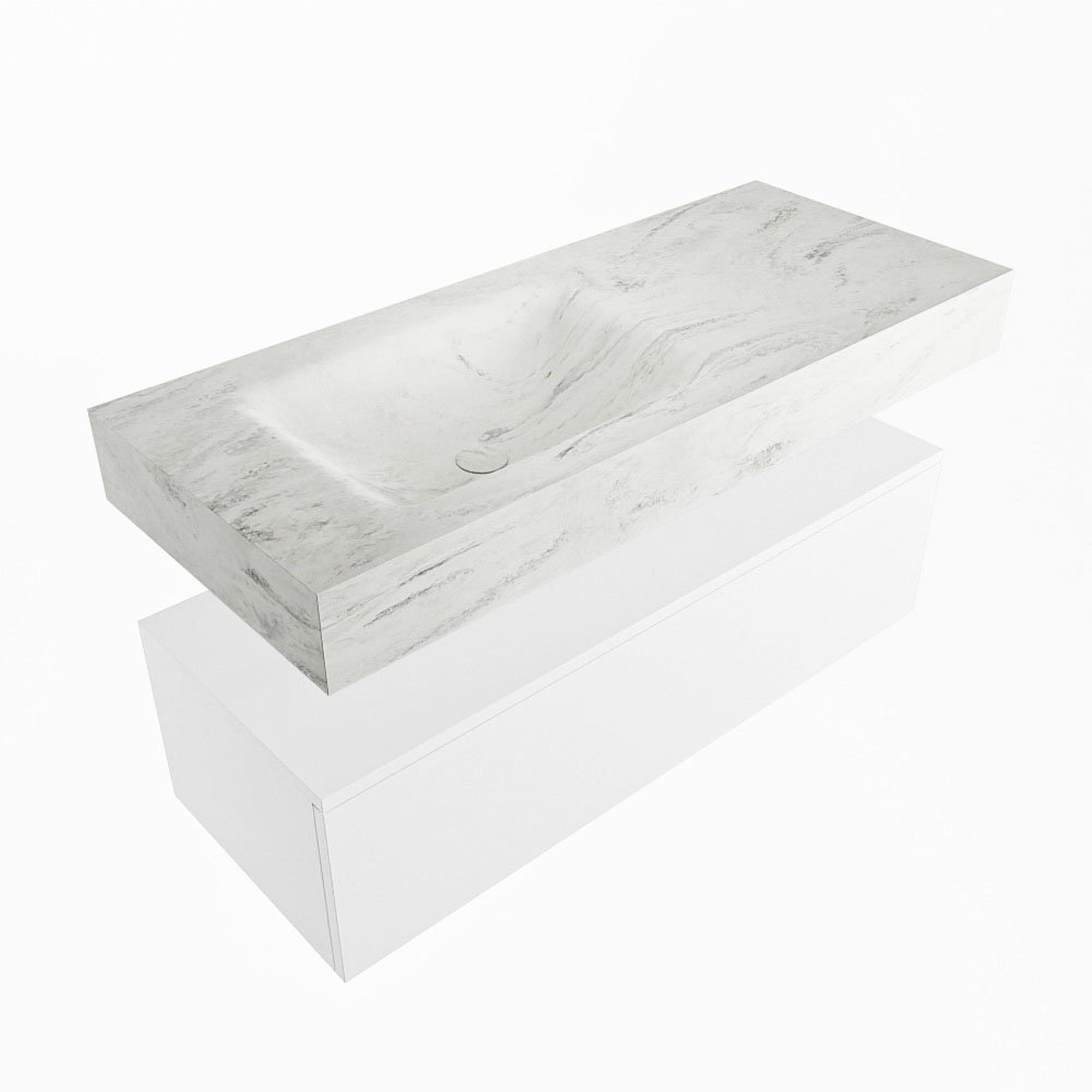 MONDIAZ ALAN - DLUX Badkamermeubelset - 110cm - onderkast - Talc - 1 lade - vrijhangende wastafel - wasbak links - 0 kraangaten - Opalo
