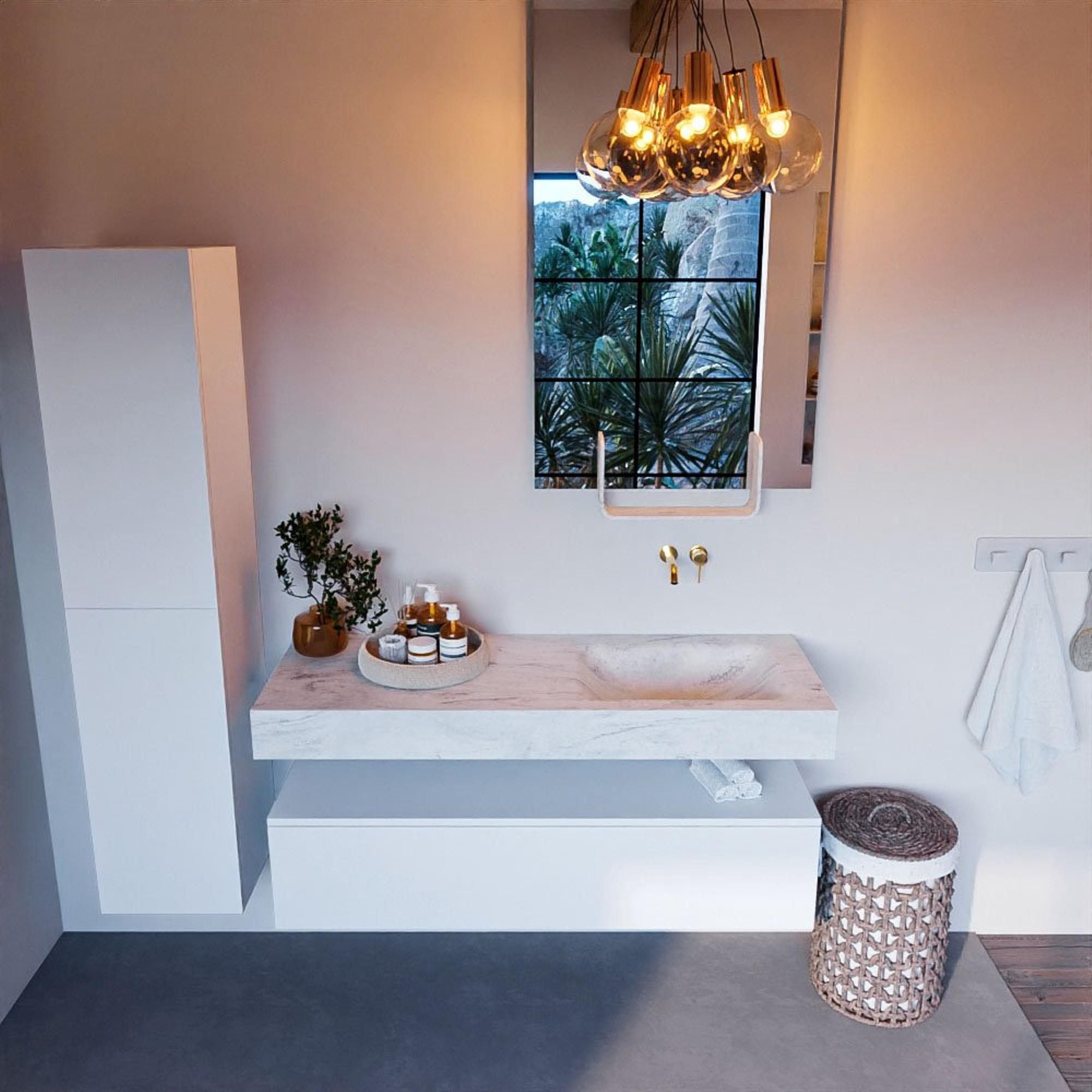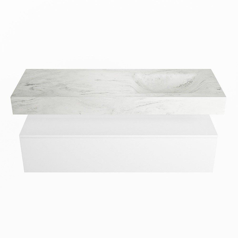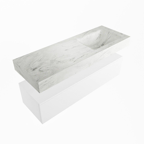 MONDIAZ ALAN - DLUX Badkamermeubelset - 130cm - onderkast - Talc - 1 lade - vrijhangende wastafel - wasbak rechts - 0 kraangaten - Opalo