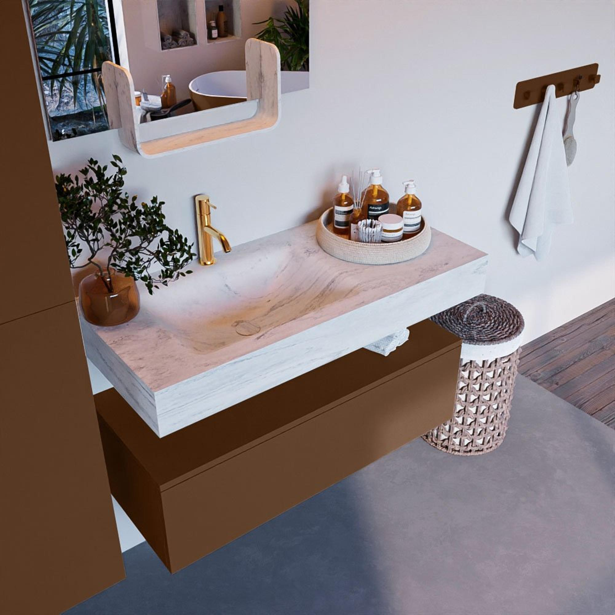 MONDIAZ ALAN - DLUX Badkamermeubelset - 100cm - onderkast - Rust - 1 lade - vrijhangende wastafel - wasbak links - 1 kraangat - Opalo