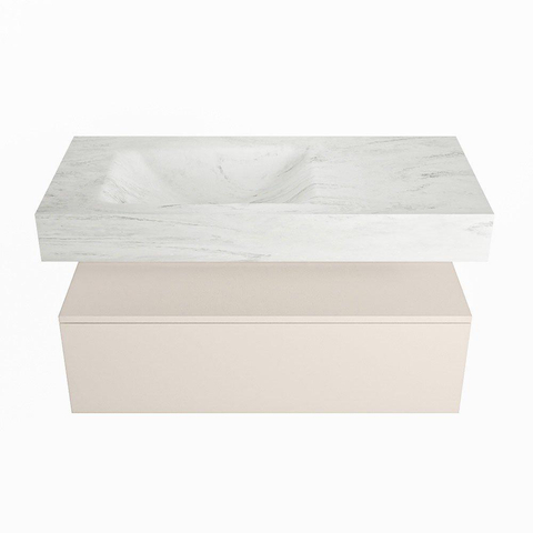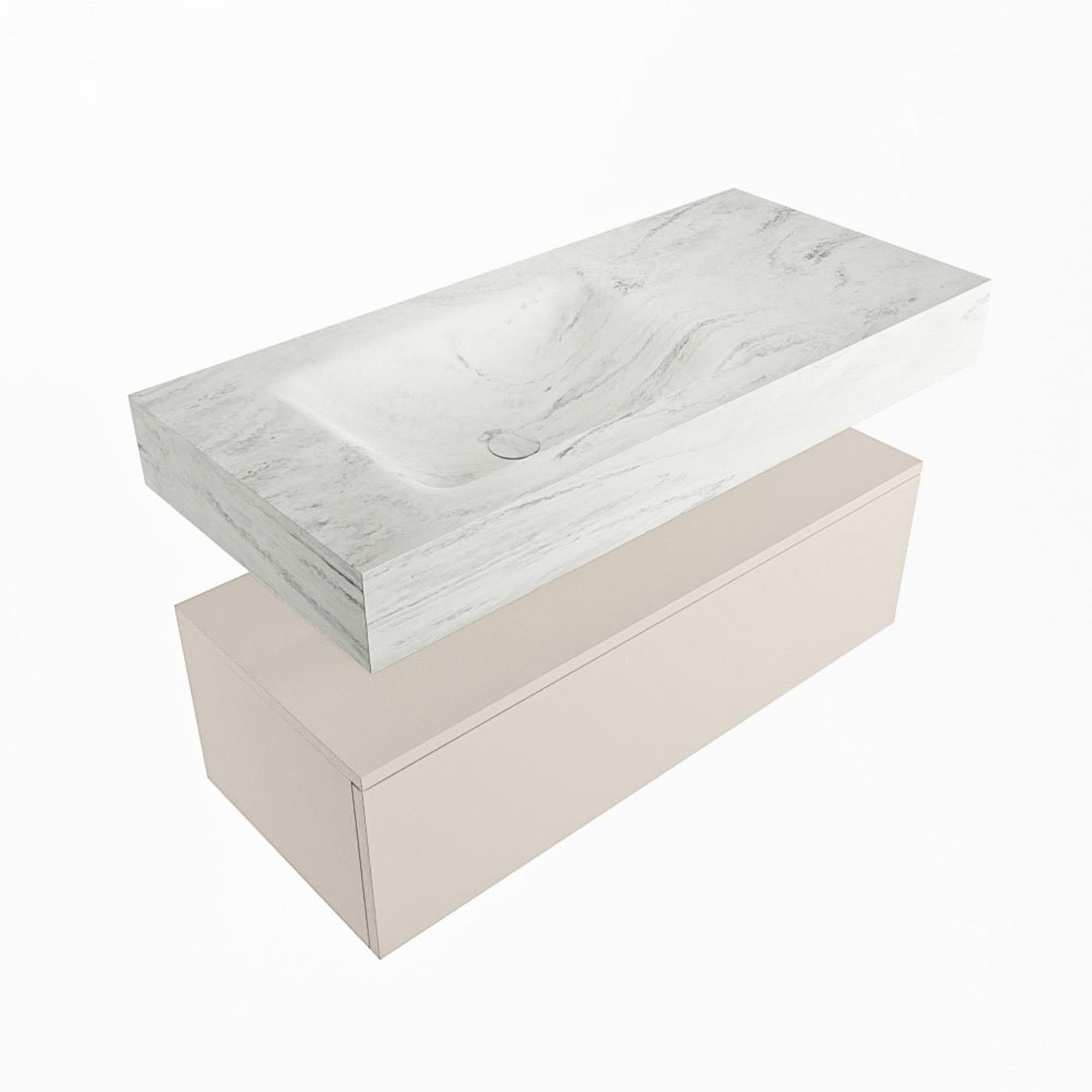 MONDIAZ ALAN - DLUX Badkamermeubelset - 100cm - onderkast - Linen - 1 lade - vrijhangende wastafel - wasbak links - 0 kraangaten - Opalo
