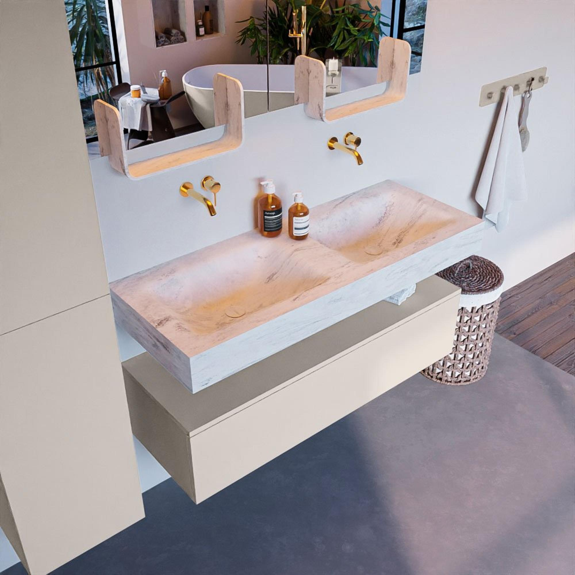 - Vrijhangende wastafel met 2 wasbakken