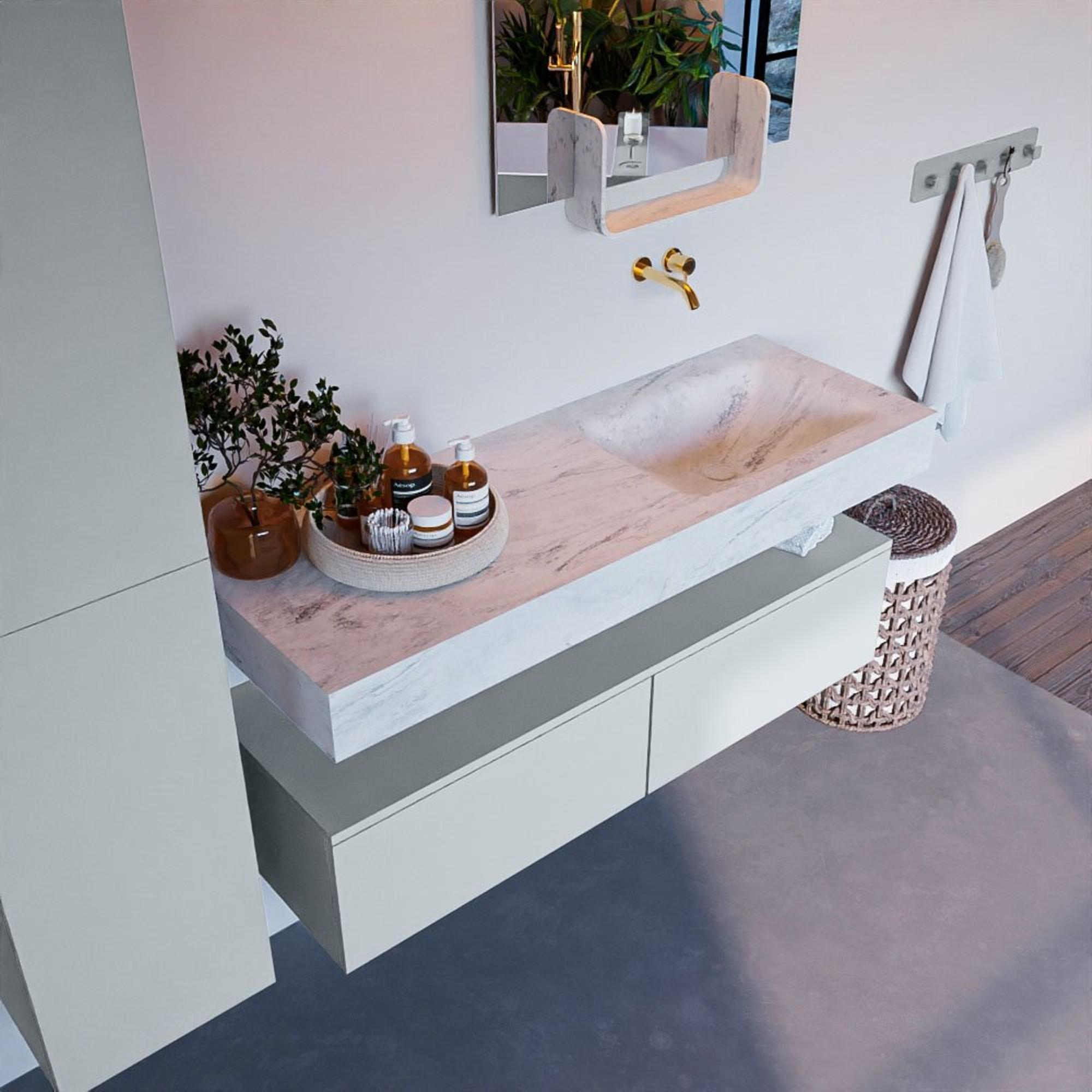 MONDIAZ ALAN - DLUX Badkamermeubelset - 130cm - onderkast - Clay - 2 lades - vrijhangende wastafel - wasbak rechts - 0 kraangaten - Opalo