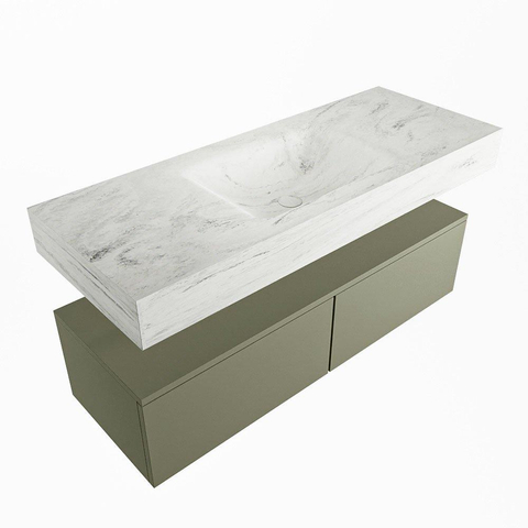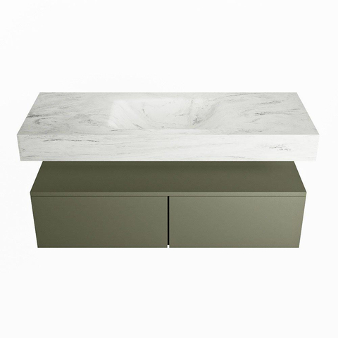 MONDIAZ ALAN - DLUX Badkamermeubelset - 120cm - onderkast - Army - 2 lades - vrijhangende wastafel - wasbak midden - 0 kraangaten - Opalo