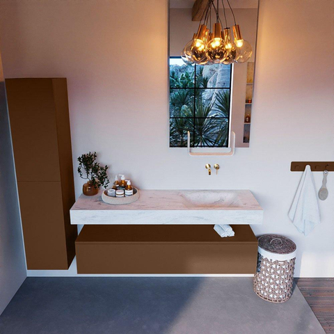MONDIAZ ALAN - DLUX Badkamermeubelset - 150cm - onderkast - Rust - 1 lade - vrijhangende wastafel - wasbak rechts - 0 kraangaten - Opalo
