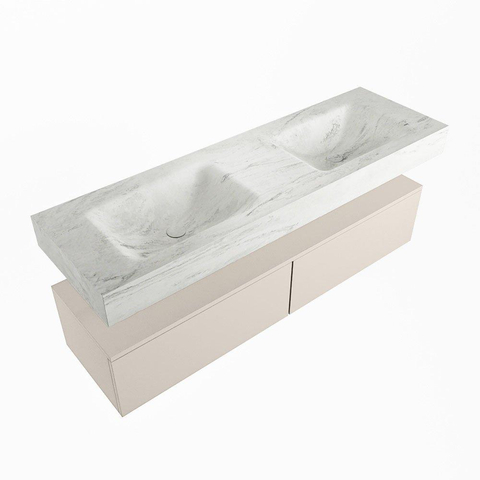 MONDIAZ ALAN - DLUX Badkamermeubelset - 150cm - onderkast - Linen - 2 lades - vrijhangende wastafel - 2 wasbakken - 2 kraangaten - Opalo