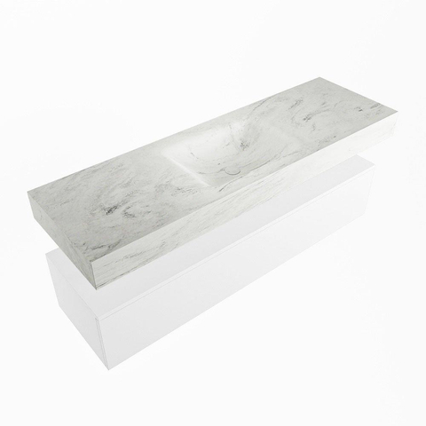 MONDIAZ ALAN - DLUX Badkamermeubelset - 150cm - onderkast - Talc - 1 lade - vrijhangende wastafel - wasbak midden - 0 kraangaten - Opalo