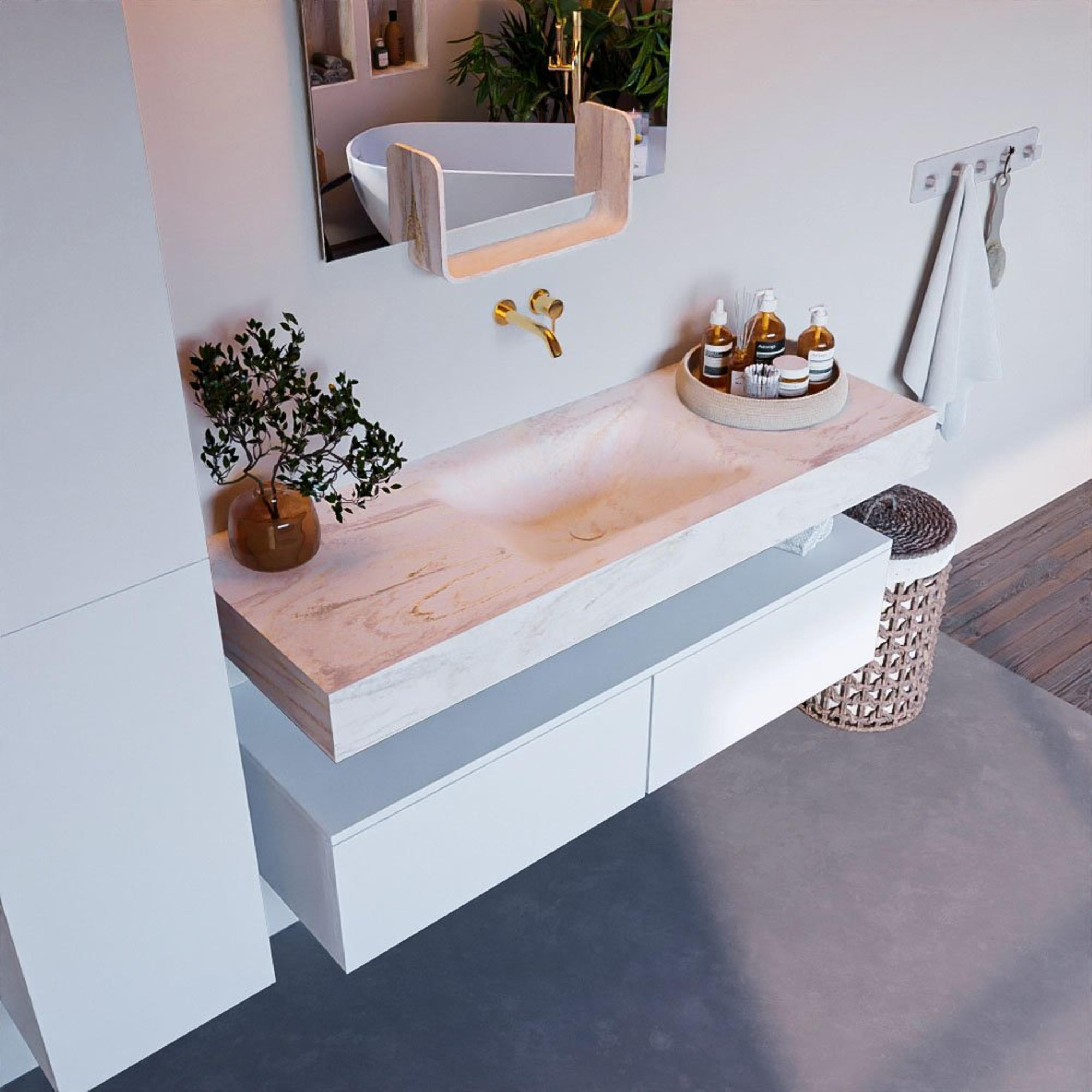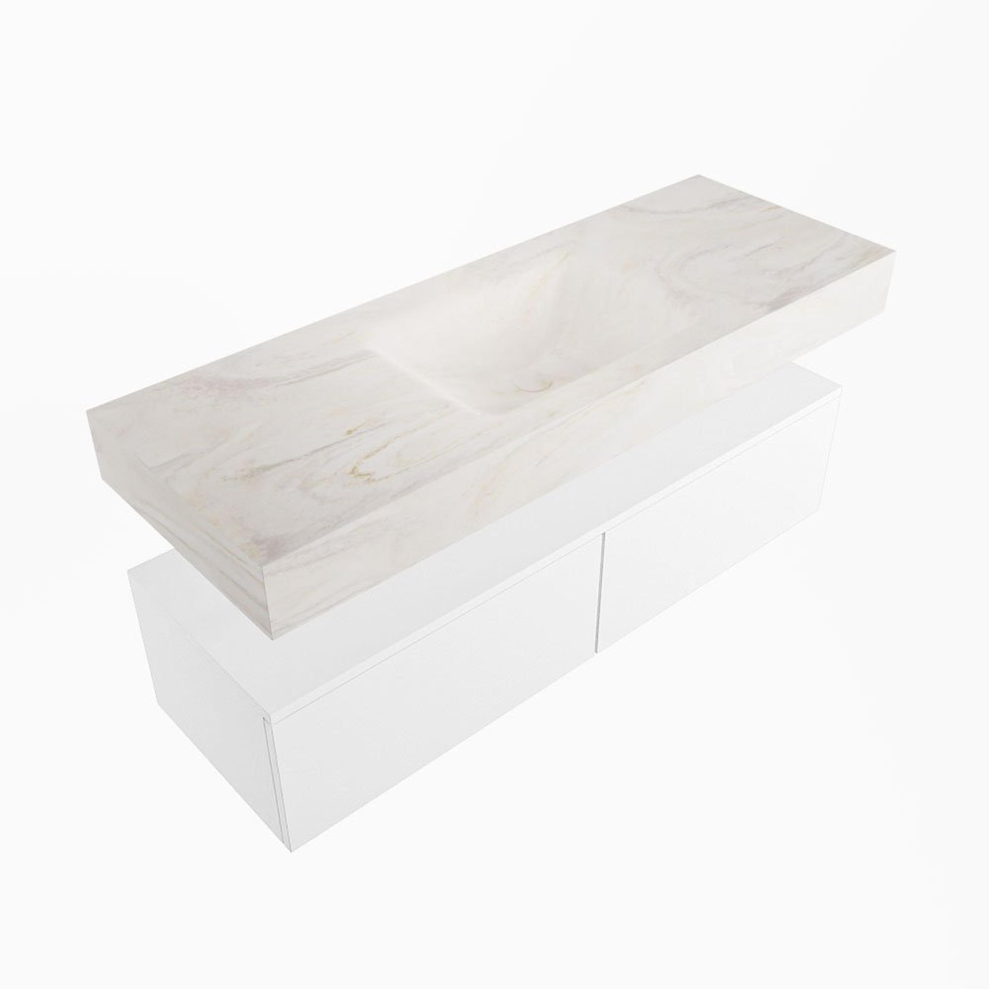 MONDIAZ ALAN - DLUX Badkamermeubelset - 130cm - onderkast - Talc - 2 lades - vrijhangende wastafel - wasbak midden - 0 kraangaten - Ostra