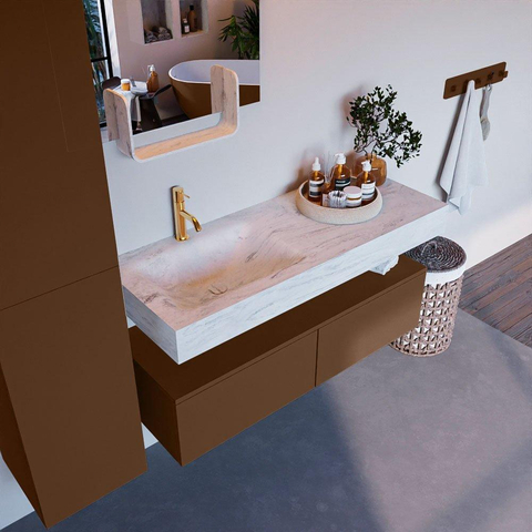 MONDIAZ ALAN - DLUX Badkamermeubelset - 120cm - onderkast - Rust - 2 lades - vrijhangende wastafel - wasbak links - 1 kraangat - Opalo