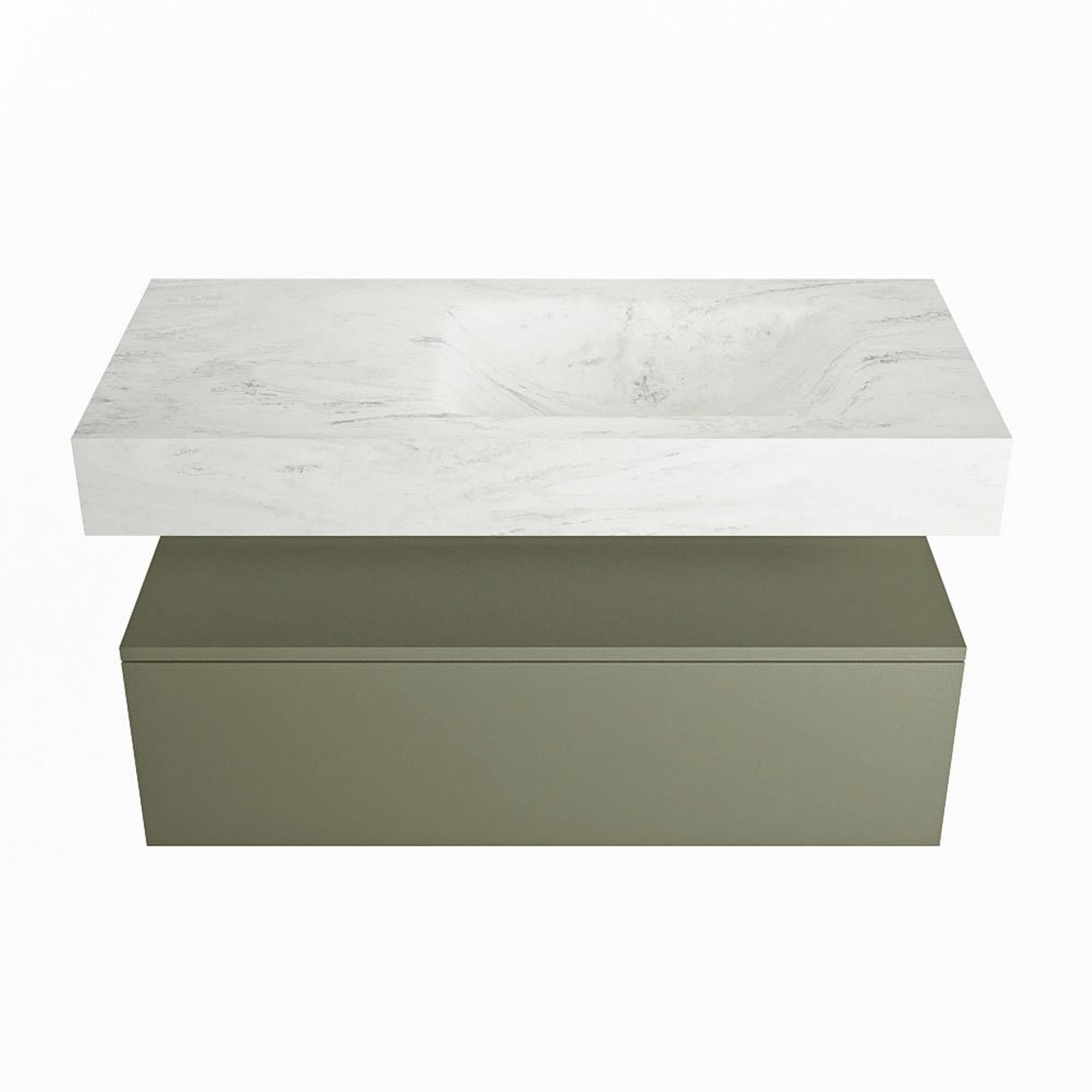 MONDIAZ ALAN - DLUX Badkamermeubelset - 100cm - onderkast - Army - 1 lade - vrijhangende wastafel - wasbak rechts - 0 kraangaten - Opalo
