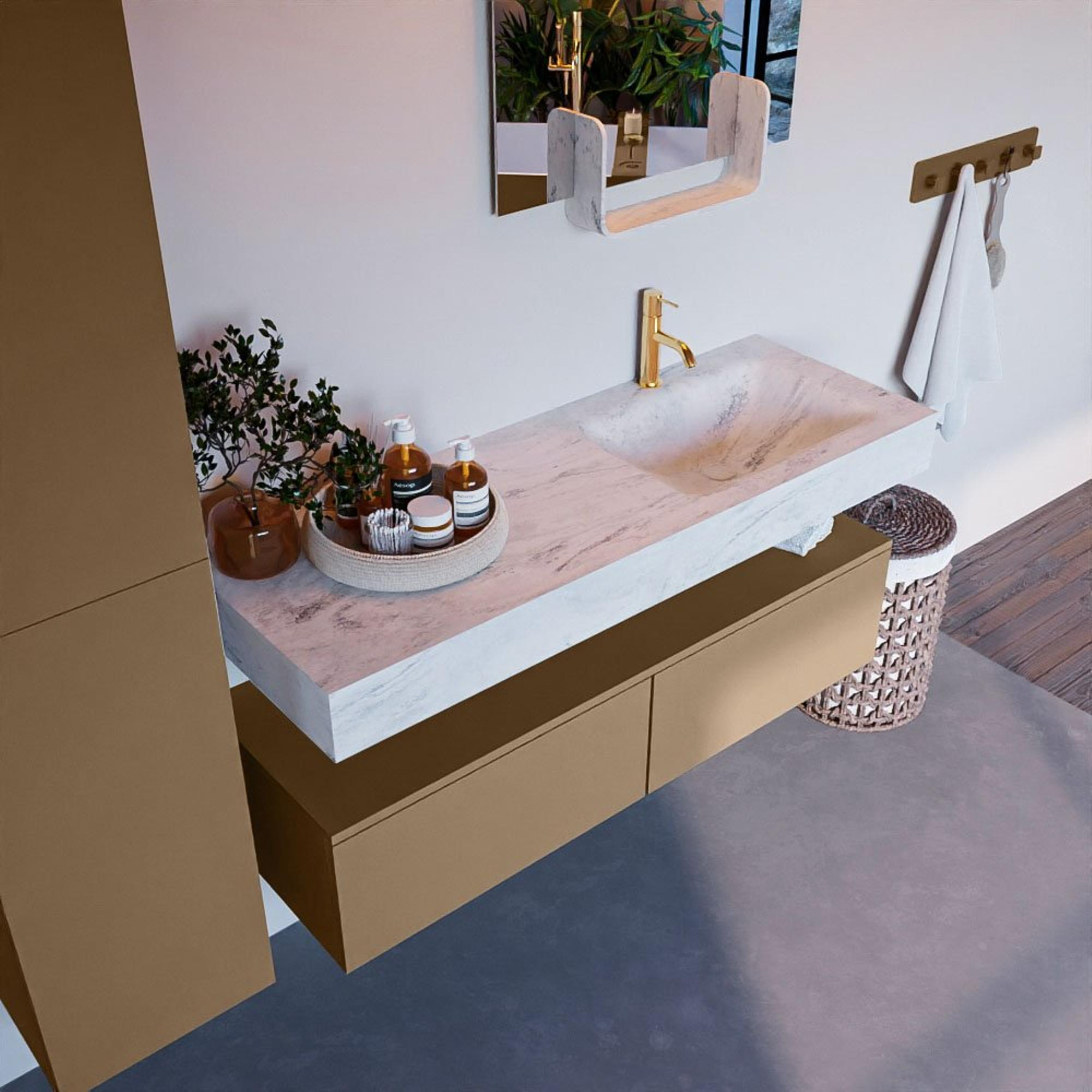 MONDIAZ ALAN - DLUX Badkamermeubelset - 130cm - onderkast - Oro - 2 lades - vrijhangende wastafel - wasbak rechts - 1 kraangat - Opalo