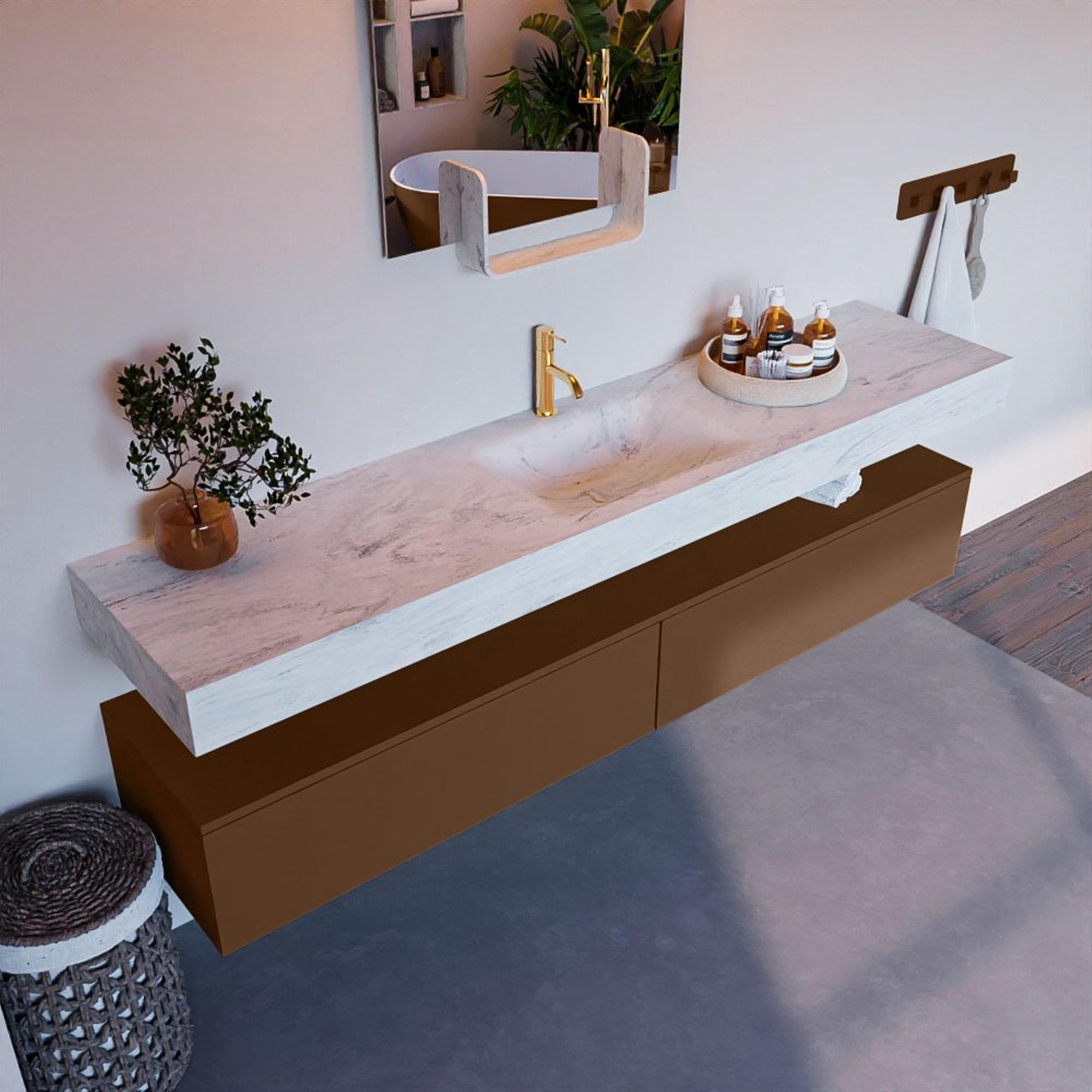 MONDIAZ ALAN - DLUX Badkamermeubelset - 200cm - onderkast - Rust - 2 lades - vrijhangende wastafel - wasbak midden - 1 kraangat - Opalo
