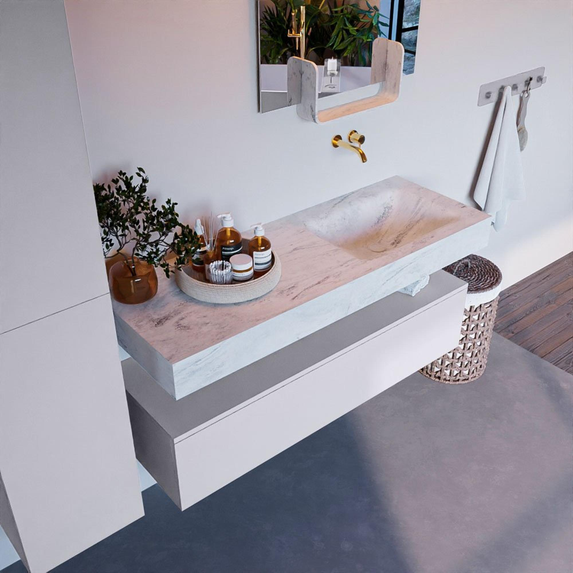 - Vrijhangende wastafel met wasbak rechts