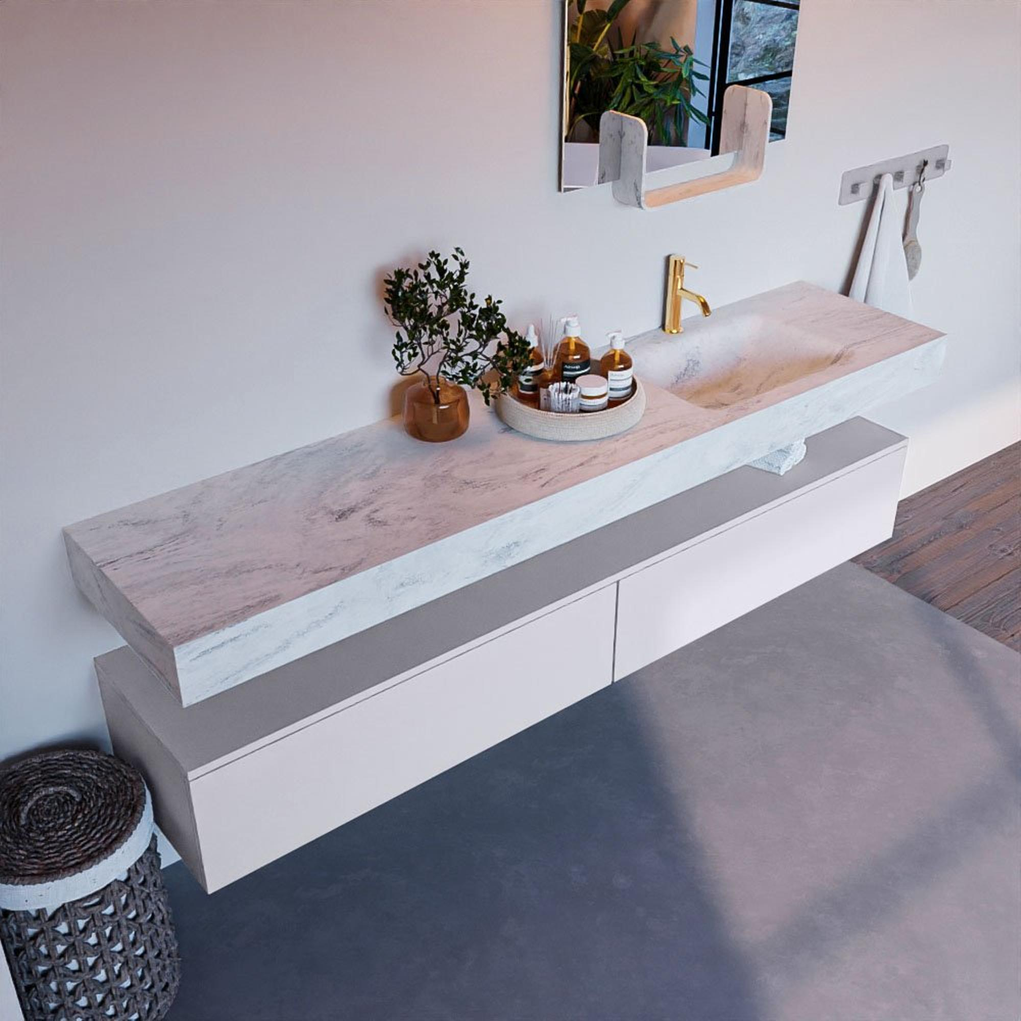 MONDIAZ ALAN - DLUX Badkamermeubelset - 200cm - onderkast - Cale - 2 lades - vrijhangende wastafel - wasbak rechts - 1 kraangat - Opalo