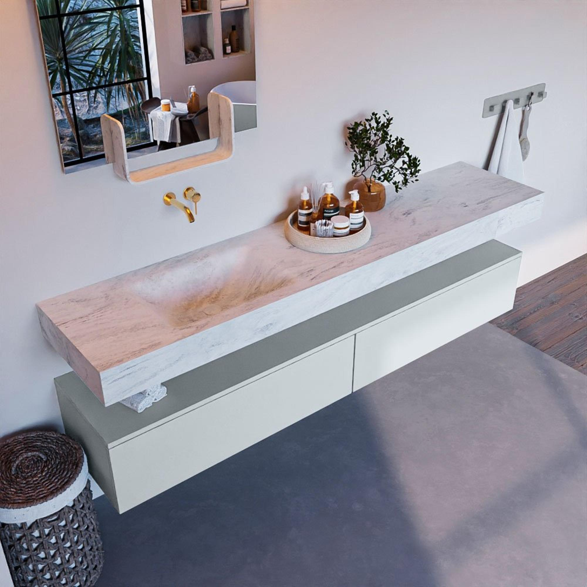 MONDIAZ ALAN - DLUX Badkamermeubelset - 200cm - onderkast - Clay - 2 lades - vrijhangende wastafel - wasbak links - 0 kraangaten - Opalo