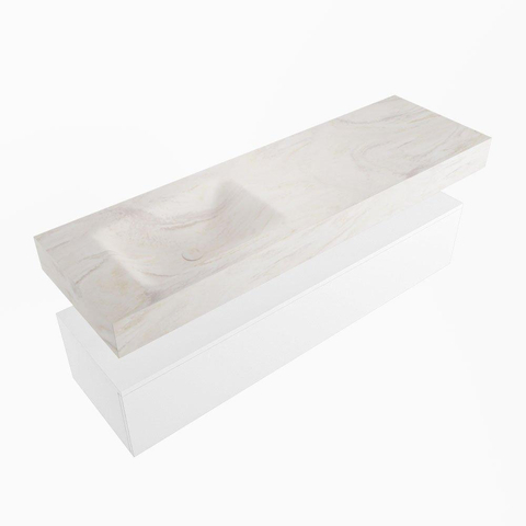 MONDIAZ ALAN - DLUX Badkamermeubelset - 150cm - onderkast - Talc - 1 lade - vrijhangende wastafel - wasbak links - 0 kraangaten - Ostra