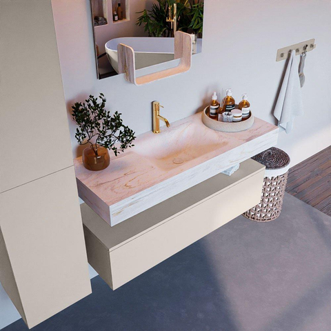 MONDIAZ ALAN - DLUX Badkamermeubelset - 120cm - onderkast - Linen - 1 lade - vrijhangende wastafel - wasbak midden - 1 kraangat - Ostra
