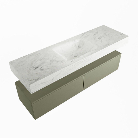 MONDIAZ ALAN - DLUX Badkamermeubelset - 150cm - onderkast - Army - 2 lades - vrijhangende wastafel - wasbak midden - 0 kraangaten - Opalo