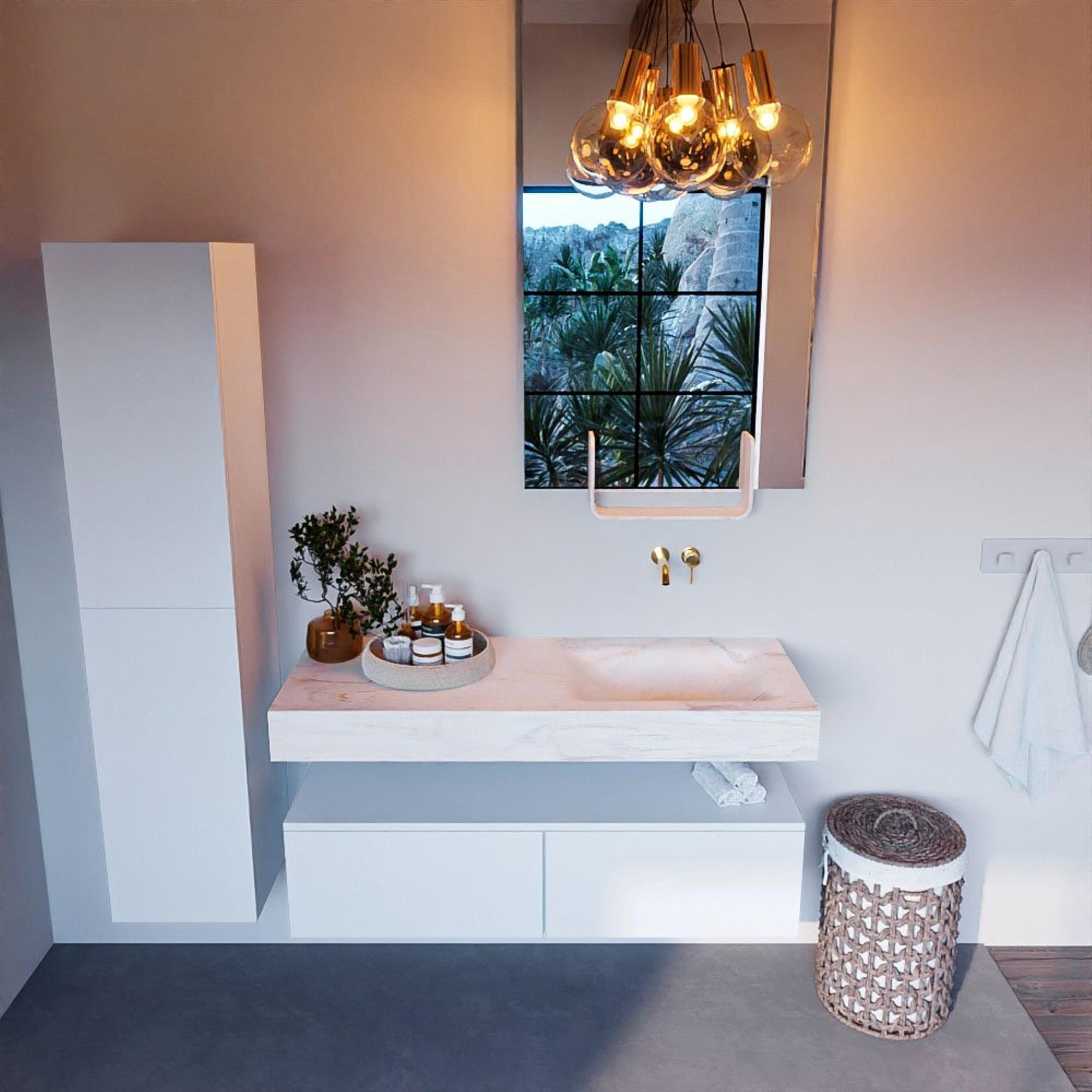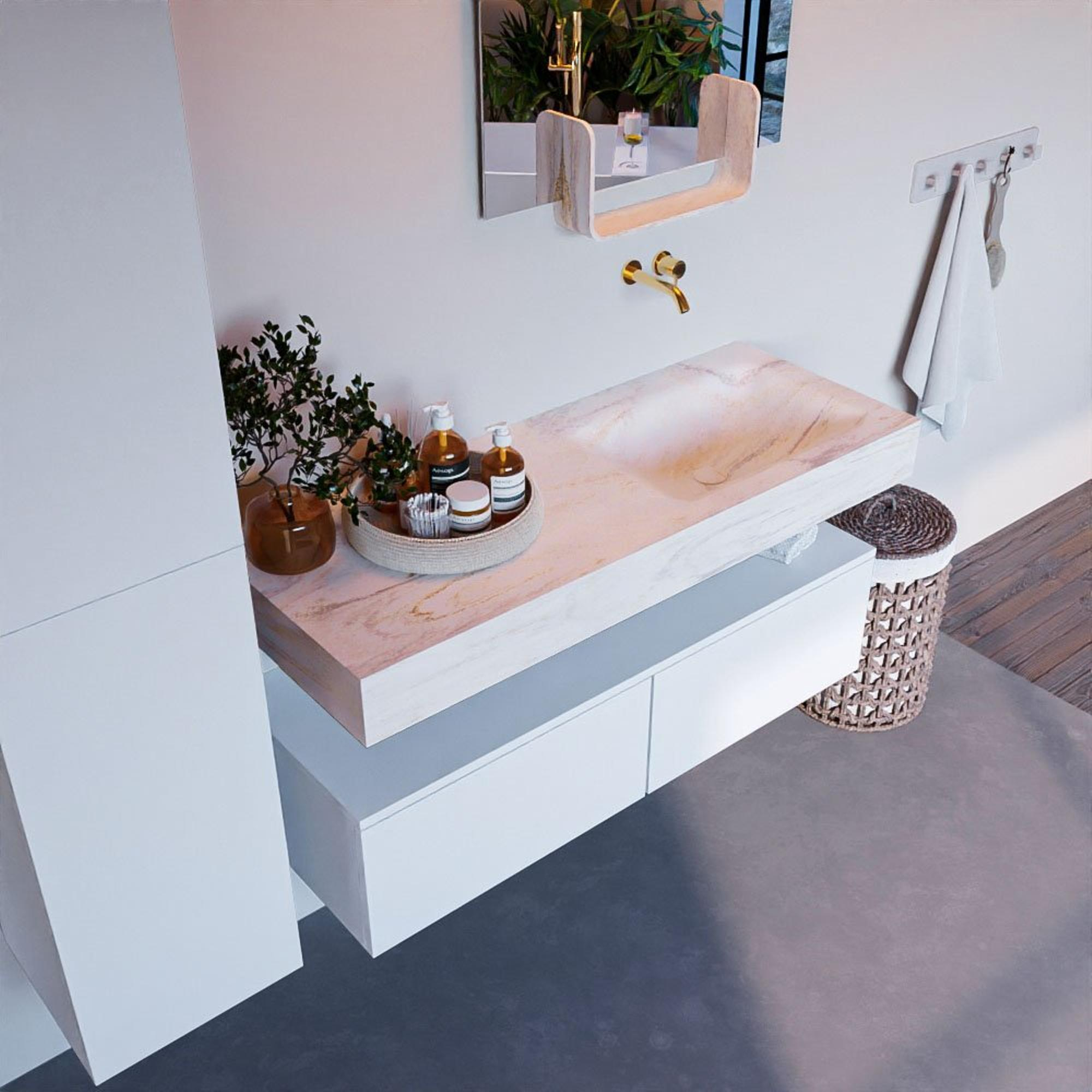 MONDIAZ ALAN - DLUX Badkamermeubelset - 120cm - onderkast - Talc - 2 lades - vrijhangende wastafel - wasbak rechts - 0 kraangaten - Ostra