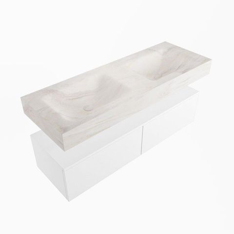 MONDIAZ ALAN - DLUX Badkamermeubelset - 130cm - onderkast - Talc - 2 lades - vrijhangende wastafel - 2 wasbakken - 2 kraangaten - Ostra
