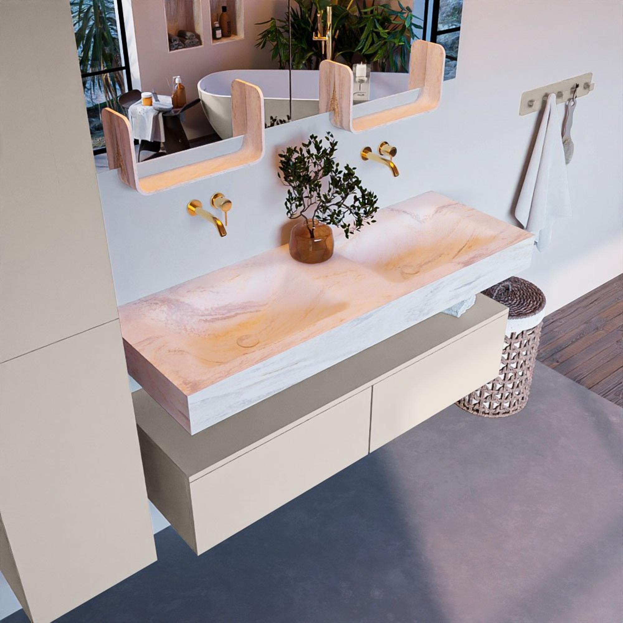MONDIAZ ALAN - DLUX Badkamermeubelset - 130cm - onderkast - Linen - 2 lades - vrijhangende wastafel - 2 wasbakken - 0 kraangaten - Ostra