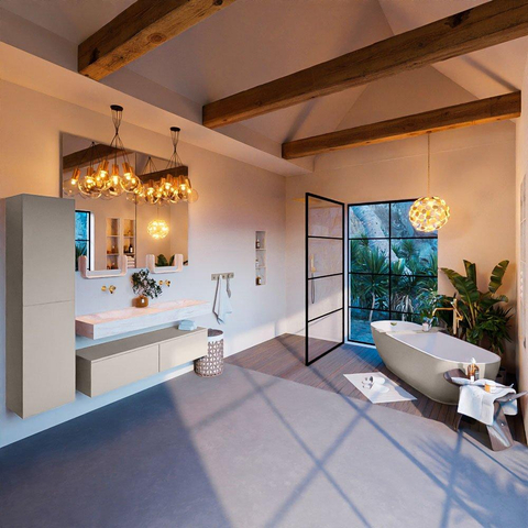 De MONDIAZ ALAN - DLUX Badkamermeubelset straalt luxe uit in elk detail. Van de hoogwaardige materialen tot het doordachte ontwerp, elk aspect van dit meubel ademt luxe. De Linen afwerking voegt een vleugje elegantie toe, terwijl de vrijhangende wastafel met 2 wasbakken een gevoel van weelde creëert. Met 2 ruime lades is er voldoende opbergruimte voor al uw badkamerbenodigdheden, waardoor functionaliteit en luxe hand in hand gaan.