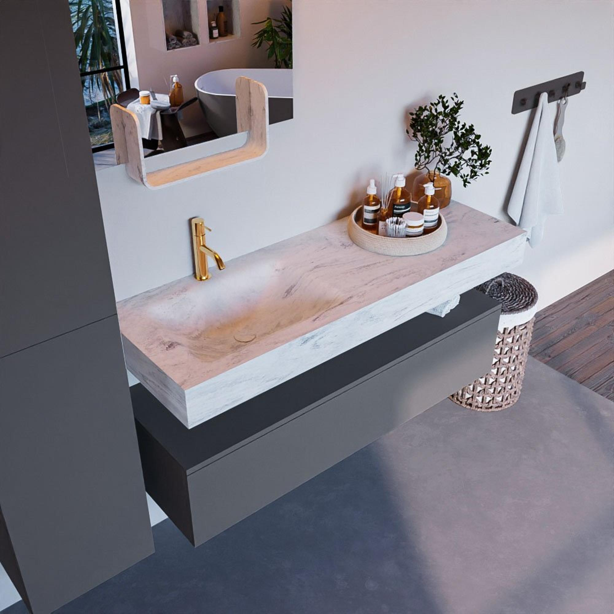 MONDIAZ ALAN - DLUX Badkamermeubelset - 130cm - onderkast - Plata - 1 lade - vrijhangende wastafel - wasbak links - 1 kraangat - Opalo