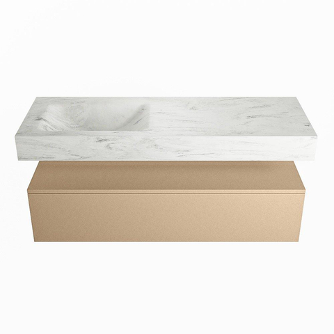 MONDIAZ ALAN - DLUX Badkamermeubelset - 130cm - onderkast - Oro - 1 lade - vrijhangende wastafel - wasbak links - 0 kraangaten - Opalo