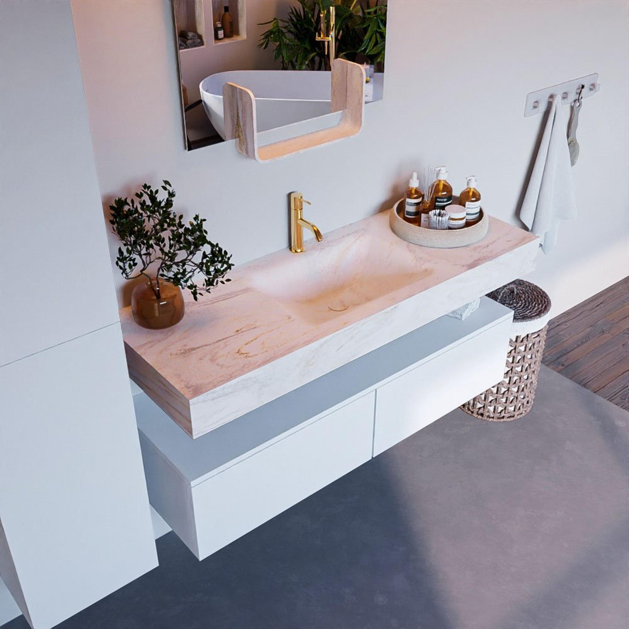 MONDIAZ ALAN - DLUX Badkamermeubelset - 130cm - onderkast - Talc - 2 lades - vrijhangende wastafel - wasbak midden - 1 kraangat - Ostra