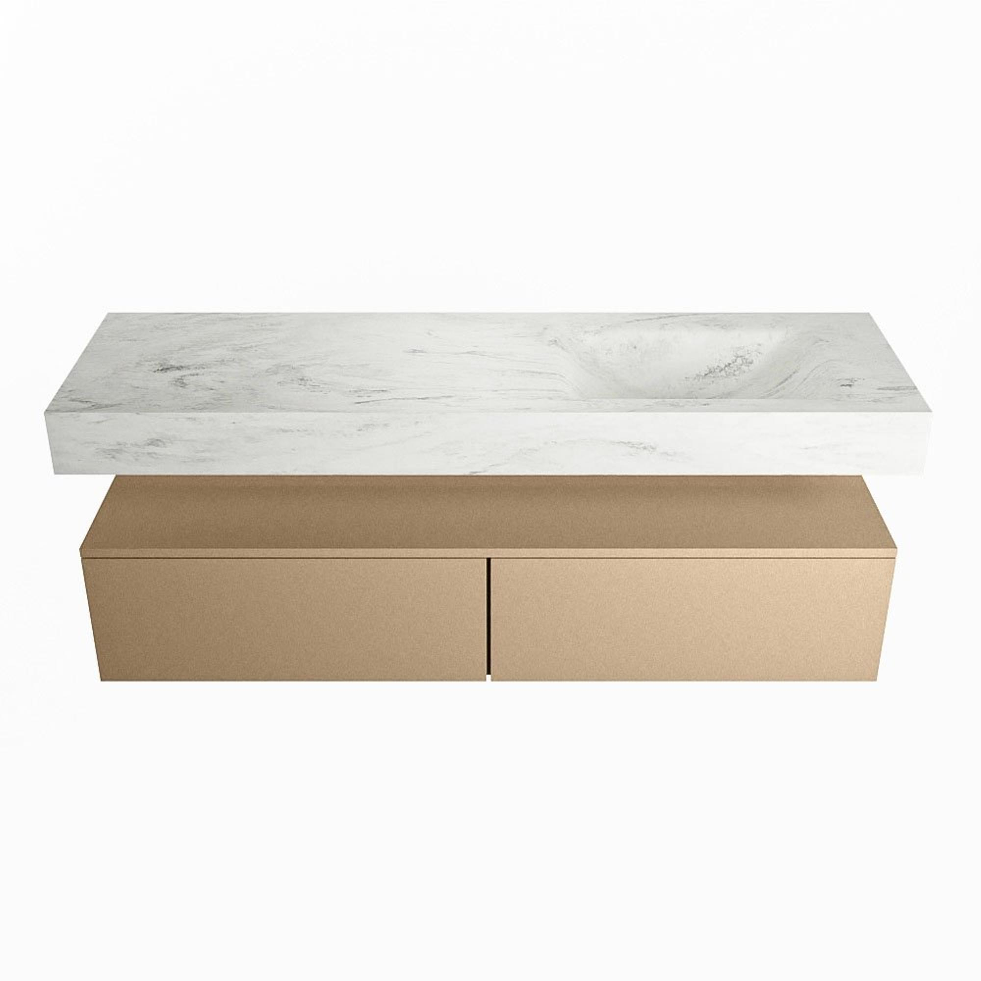 MONDIAZ ALAN - DLUX Badkamermeubelset - 150cm - onderkast - Oro - 2 lades - vrijhangende wastafel - wasbak rechts - 0 kraangaten - Opalo