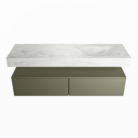 MONDIAZ ALAN - DLUX Badkamermeubelset - 150cm - onderkast - Army - 2 lades - vrijhangende wastafel - wasbak rechts - 1 kraangat - Opalo