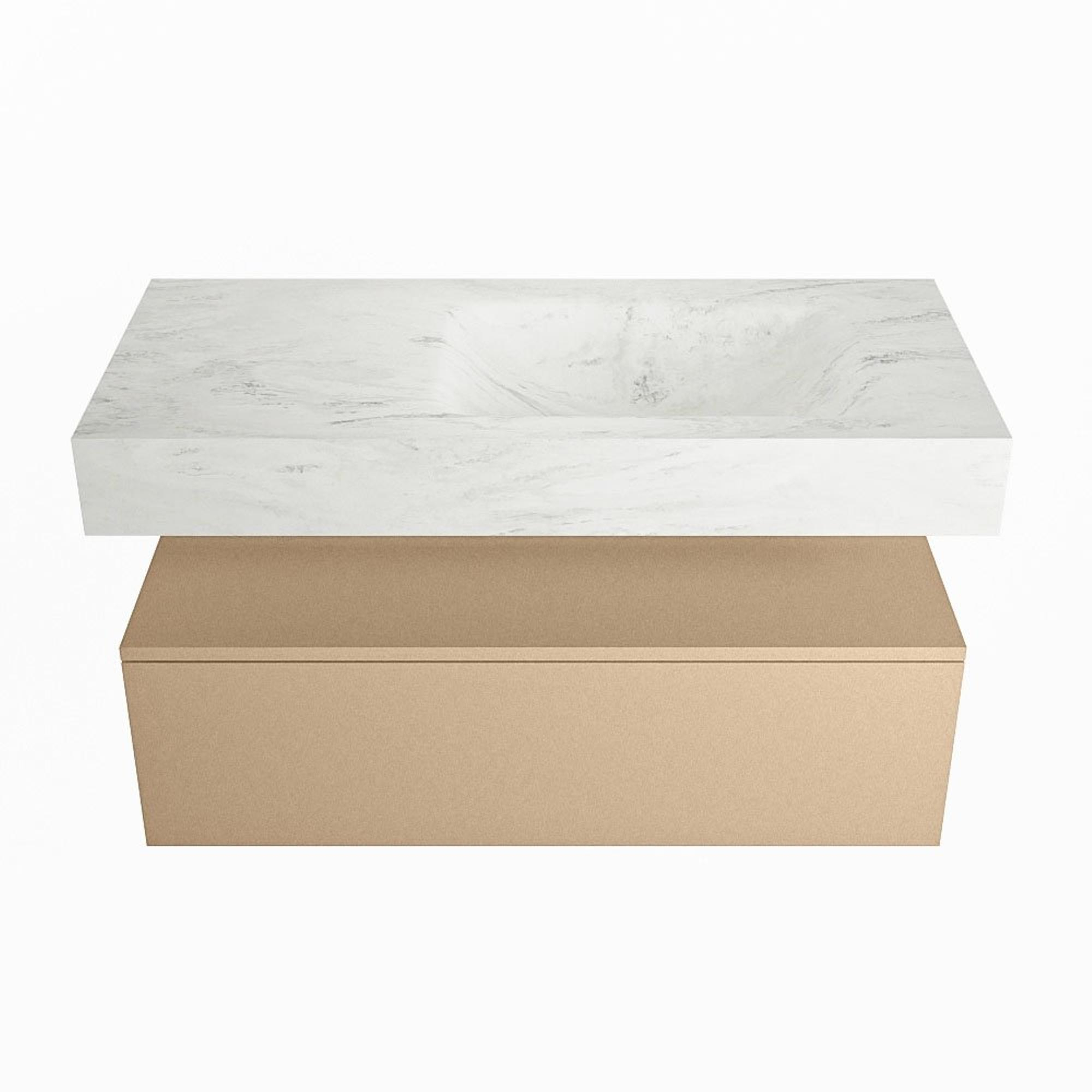 MONDIAZ ALAN - DLUX Badkamermeubelset - 100cm - onderkast - Oro - 1 lade - vrijhangende wastafel - wasbak rechts - 1 kraangat - Opalo