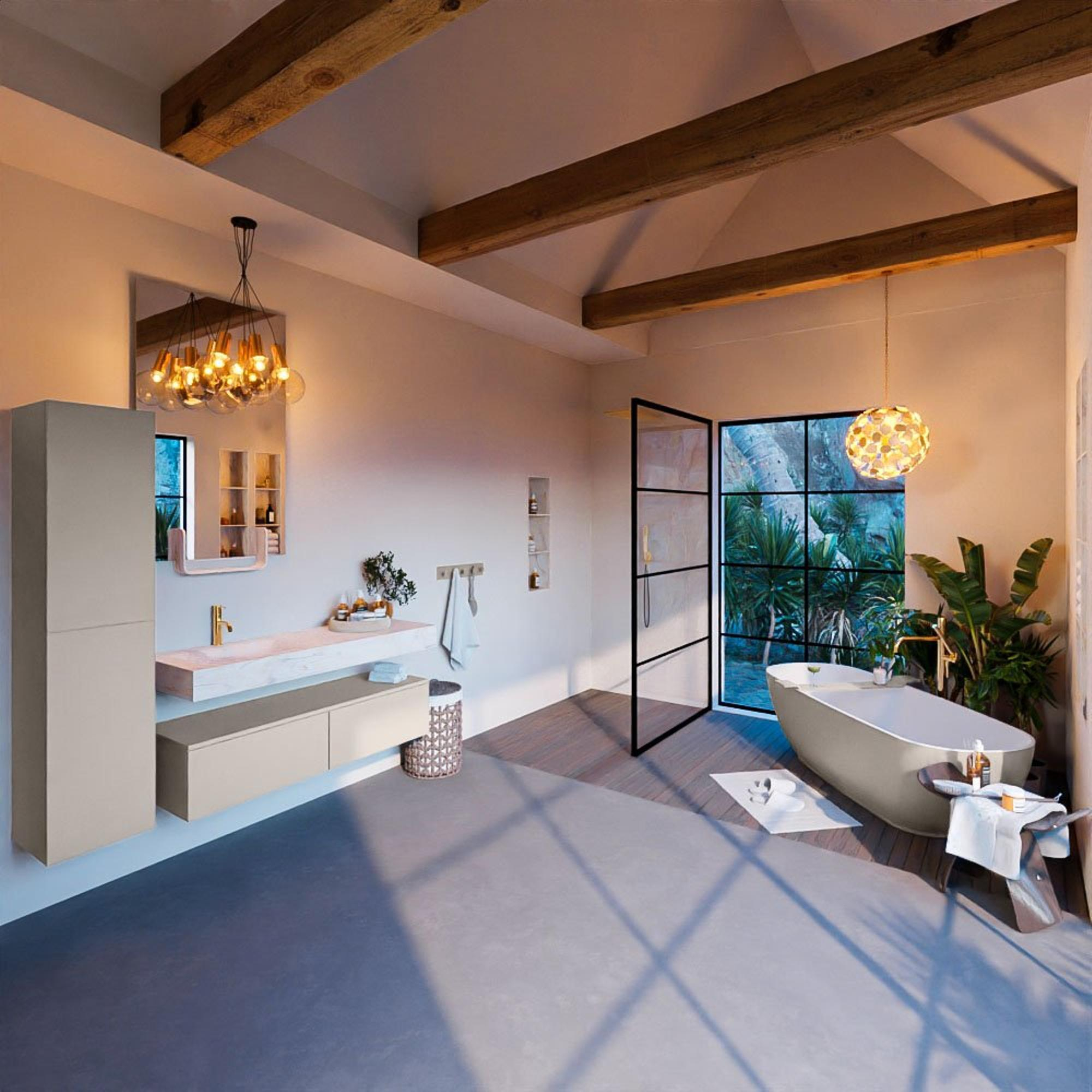 De MONDIAZ ALAN - DLUX Badkamermeubelset is een perfecte mix van stijl en functionaliteit. Het strakke design en de subtiele details maken dit meubel een aanwinst voor elke badkamer. De combinatie van de vrijhangende wastafel en de Linen afwerking zorgen voor een tijdloze uitstraling die moeiteloos past bij verschillende interieurstijlen.