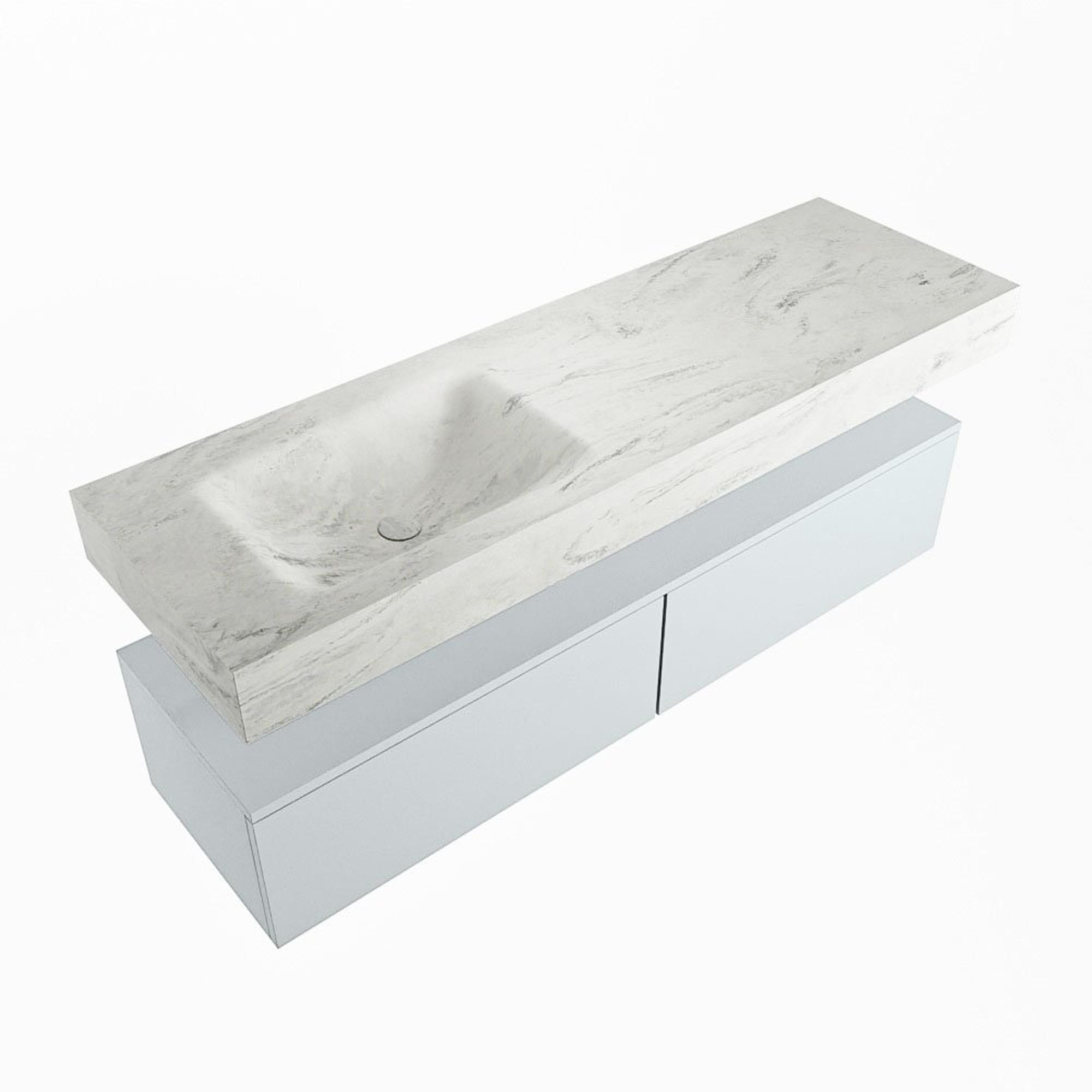 Naast zijn esthetische waarde is dit badkamermeubel ook zeer functioneel. Met twee ruime lades biedt het voldoende opbergruimte voor al je badkamerbenodigdheden. De wasbak aan de linkerkant zorgt voor een handige indeling, terwijl de vrijhangende wastafel een gevoel van ruimte creëert in de badkamer.