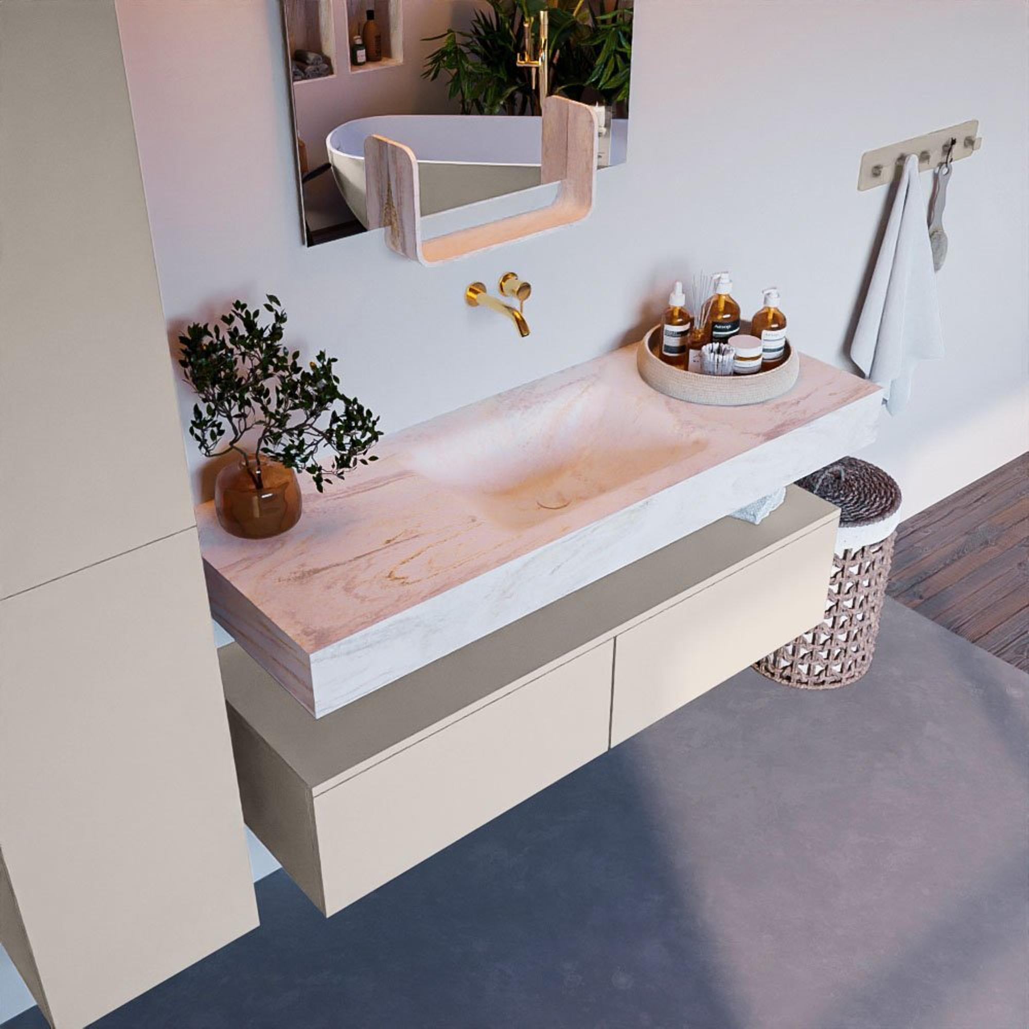 MONDIAZ ALAN - DLUX Badkamermeubelset - 130cm - onderkast - Linen - 2 lades - vrijhangende wastafel - wasbak midden - 0 kraangaten - Ostra