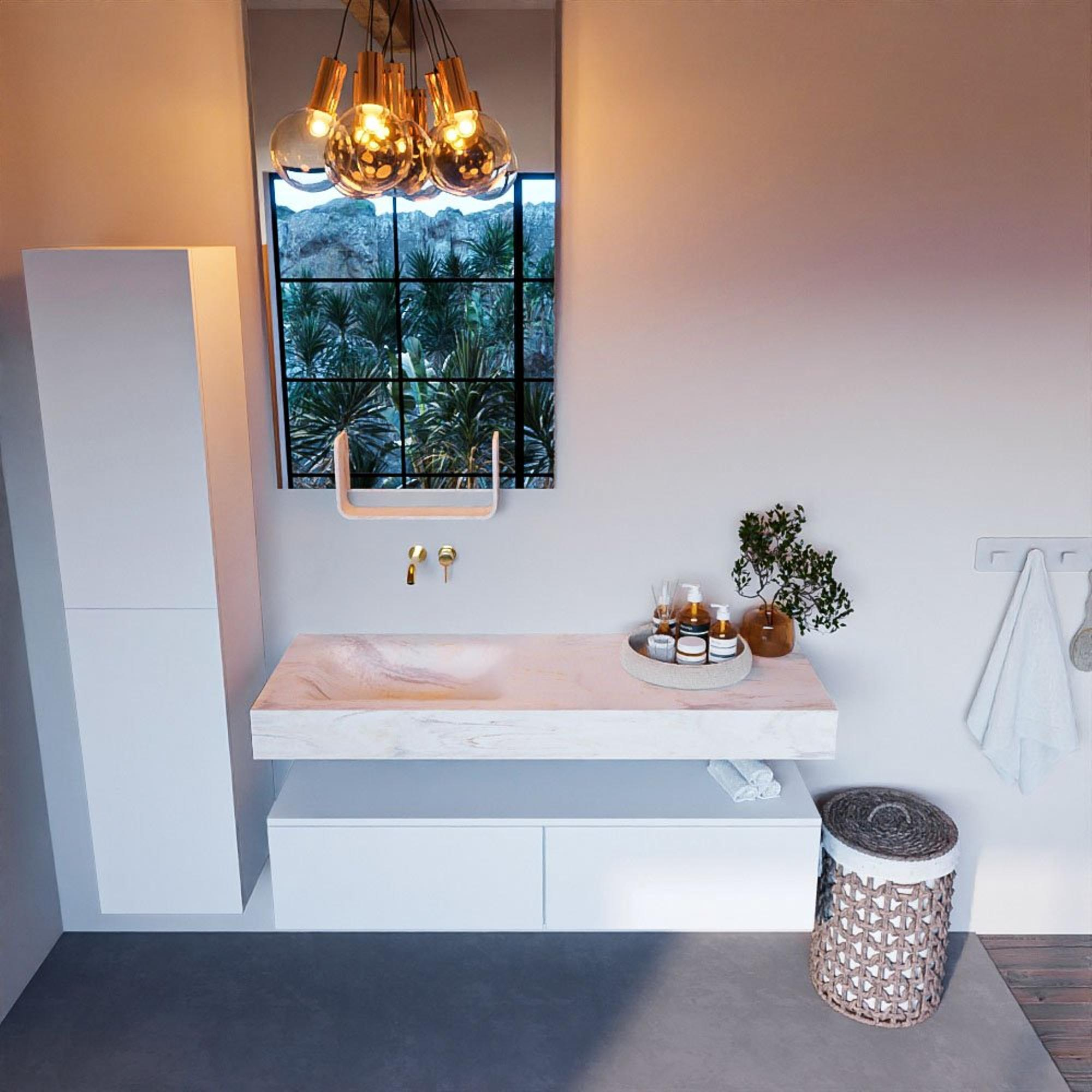 MONDIAZ ALAN - DLUX Badkamermeubelset - 130cm - onderkast - Talc - 2 lades - vrijhangende wastafel - wasbak links - 0 kraangaten - Ostra