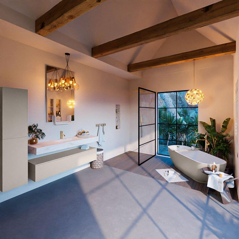 Met zijn Ostra designelementen straalt dit badkamermeubelset een tijdloze elegantie uit. De combinatie van de Linen afwerking en de vrijhangende wastafel creëert een harmonieus geheel dat een gevoel van luxe en comfort toevoegt aan je badkamer. Dit meubelstuk is een symbool van verfijning en klasse.