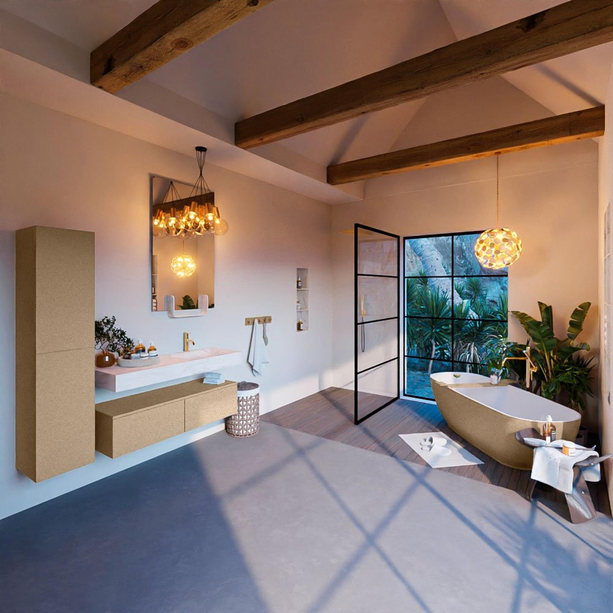 MONDIAZ ALAN - DLUX Badkamermeubelset - 120cm - onderkast - Oro - 2 lades - vrijhangende wastafel - wasbak rechts - 1 kraangat - Opalo