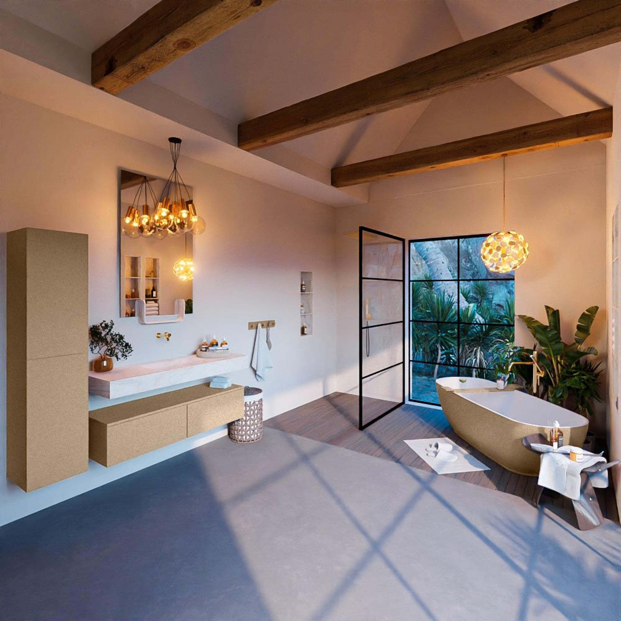 MONDIAZ ALAN - DLUX Badkamermeubelset - 130cm - onderkast - Oro - 2 lades - vrijhangende wastafel - wasbak midden - 0 kraangaten - Opalo