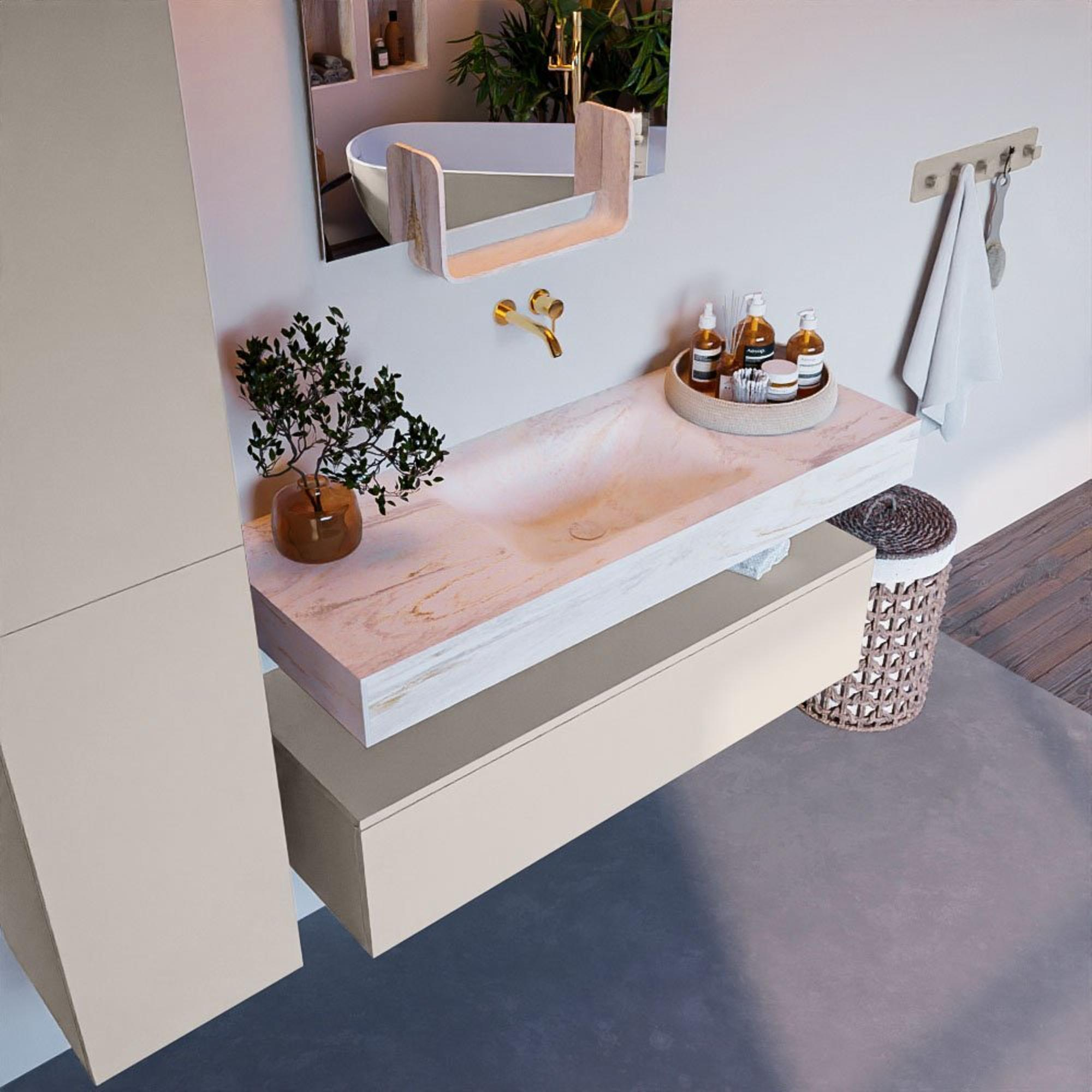 MONDIAZ ALAN - DLUX Badkamermeubelset - 120cm - onderkast - Linen - 1 lade - vrijhangende wastafel - wasbak midden - 0 kraangaten - Ostra