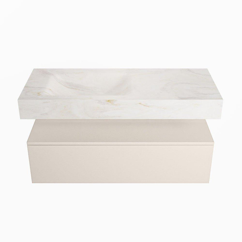 MONDIAZ ALAN - DLUX Badkamermeubelset - 110cm - onderkast - Linen - 1 lade - vrijhangende wastafel - wasbak links - 0 kraangaten - Ostra